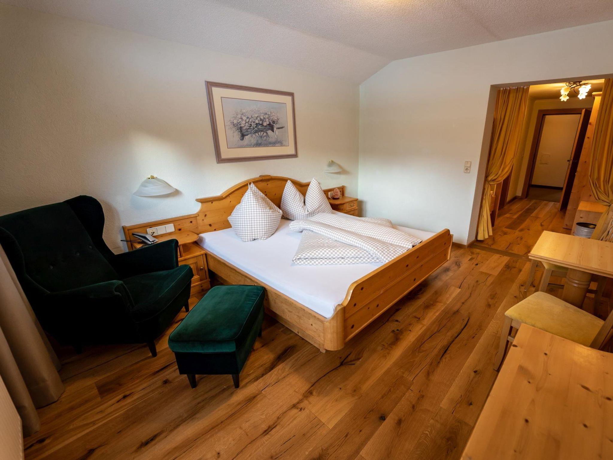Die ca. 27m² großen ruhig gelegenen Doppelzimmer bieten einen Balkon ,die Zimmer sind ausgestattet mit einem Doppelbett, Dusche-WC,
