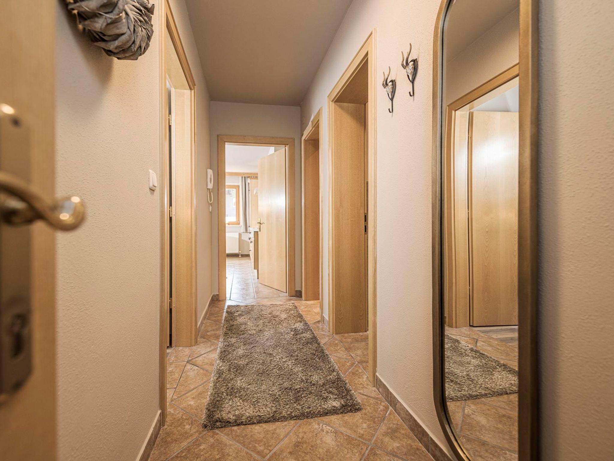 Die Ferienwohnung bietet zwei getrennte Schlafzimmer, einen Wohnraum mit ausziehbarer Doppelcouch, ein Badezimmer mit Dusche, ein separates WC, einen Vorraum sowie einen Balkon.