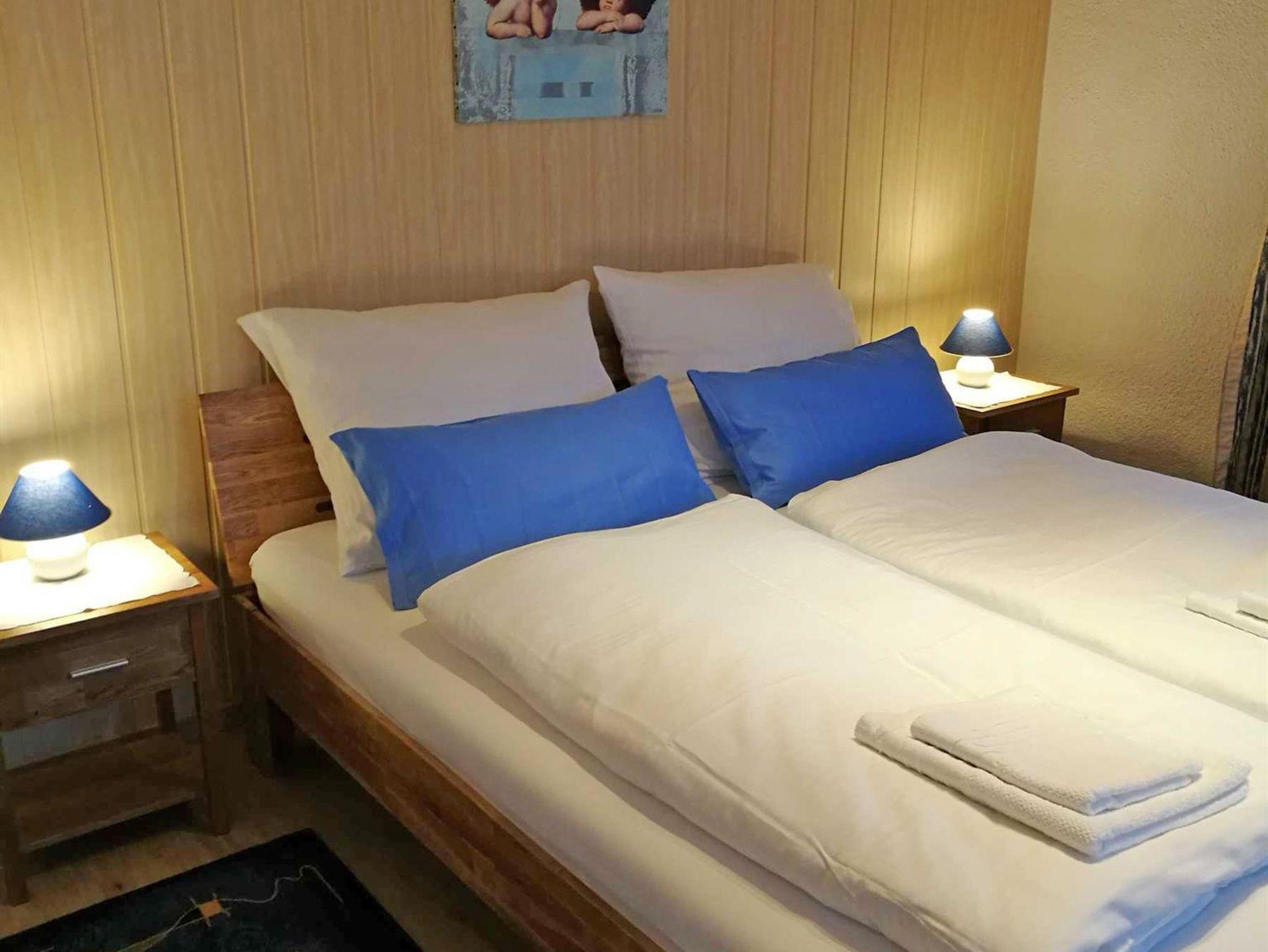 Die Ferienwohnung 3 ist ausgestattet mit einem Wohnzimmer mit Kochnische, 2 Schlafzimmer, 2 Badezimmer sowie einem Balkon.