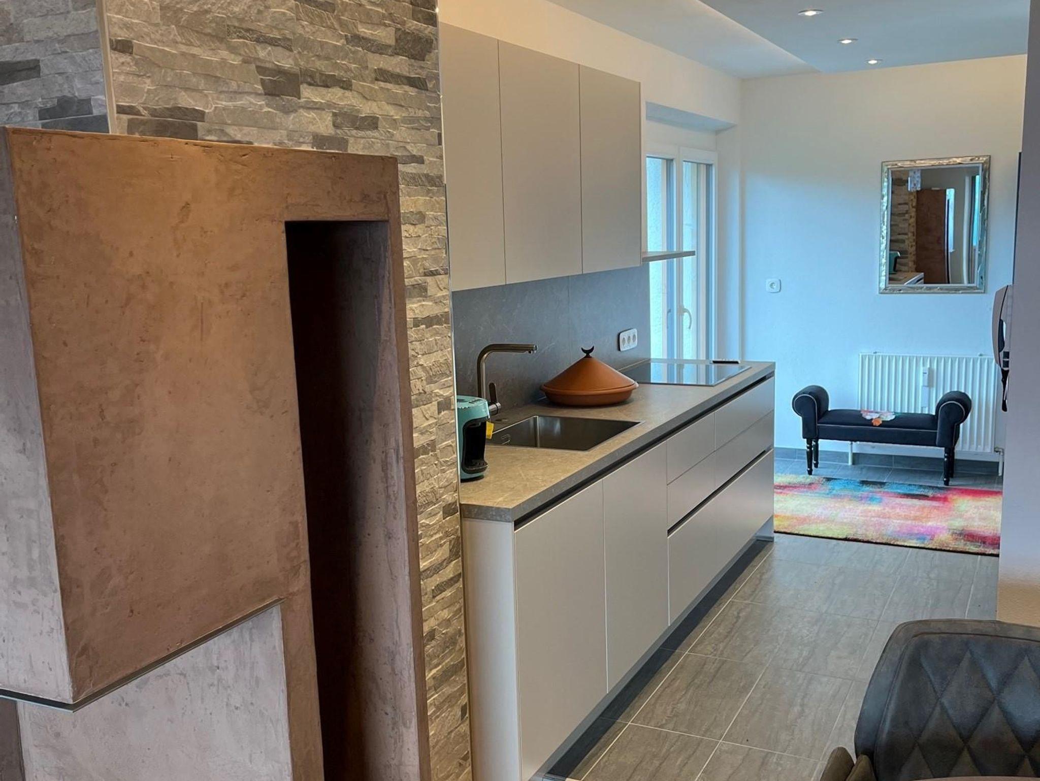 Mit Küchenzeile samt Geschirrspüler, Kühlschrank, Backrohr, Herd; ein hochwertiges Sofa - Bett (elektrisch verstellbar); Balkon mit Bergblick, Terrasse mit Südwest-Ausrichtung und einzigartigem Inntalblick, vollautomatische Jalousien; Dusche und WC