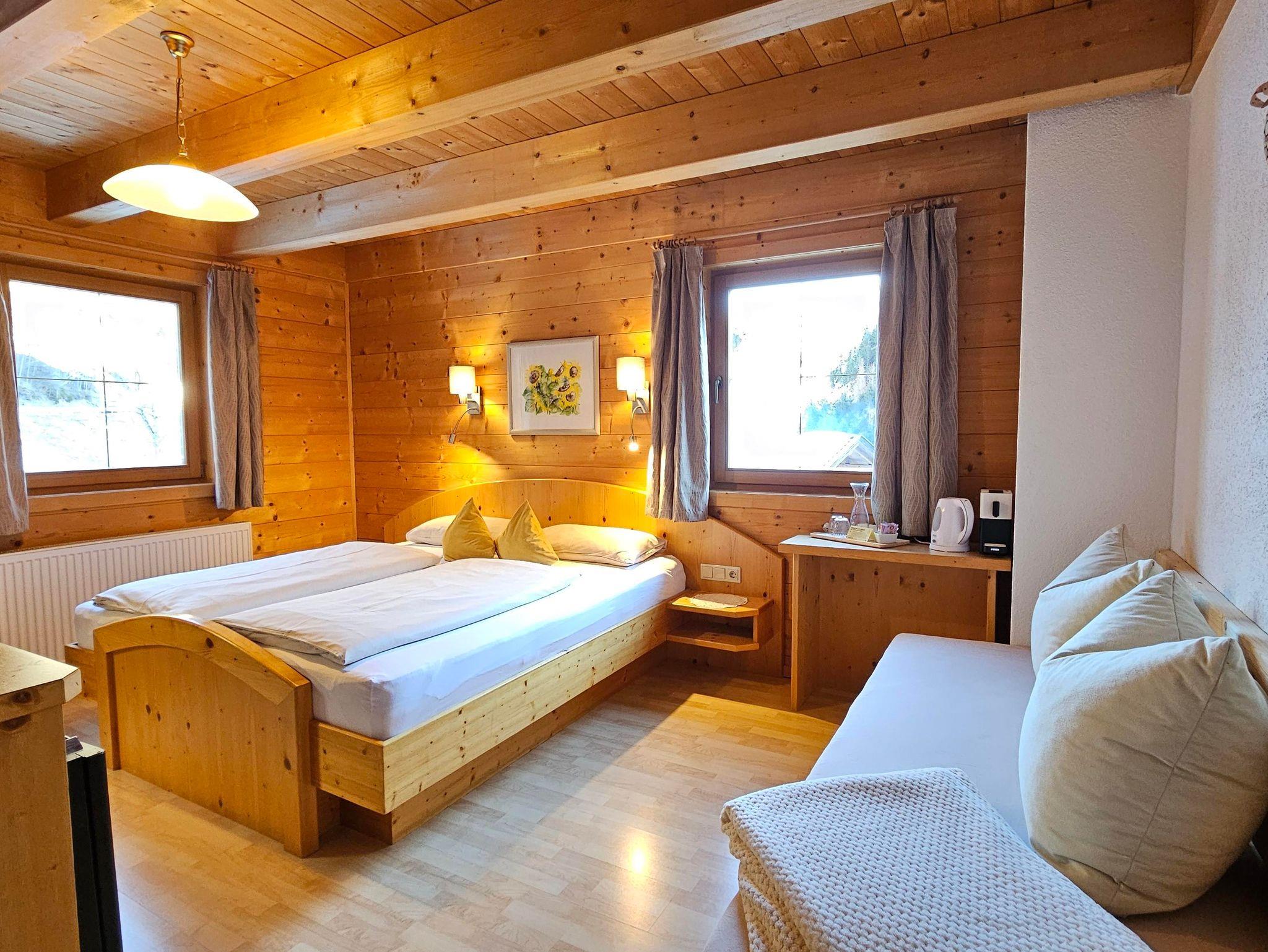 Wer es traditionell ländlich liebt, bucht im Stubenhaus: Authentische Doppelzimmer oder Apartments für 2-5 Personen mit neu renovierten Bädern, sehr bequemen Betten und dem Duft von Fichtenholz.