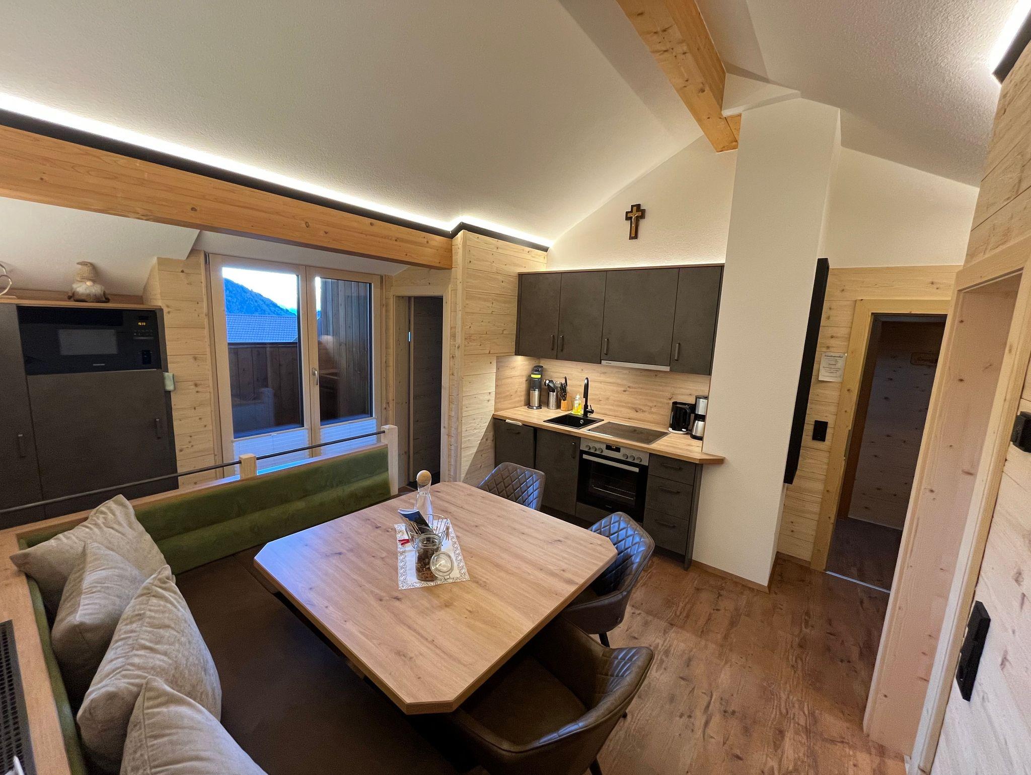 Die Wohnküche ist Richtung Osten ausgerichet und mit einer kleinen Dachterrasse (inkl. Wäscheständer) versehen.