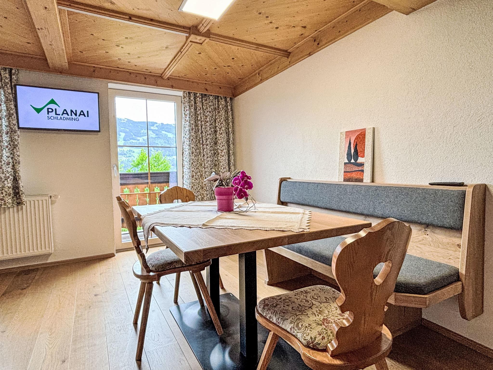 Large, rustic farmhouse "Salzmannhof", 1'020 m a.s.l., 3 storeys. In the district of Leiten 3 km from the centre of Ramsau, 4 km from the centre of Schladming, in the residential district, 9.5 km from the lake, 5 km from the skiing area. In the house: storage room for skis, ski boot dryer. Roofed, parking on the premises. Shop 2 km, restaurant 1 km, bus stop "Ramsau Leiten Sonnenhügel" 1 km, railway station "Schladming" 4.5 km, outdoor swimming pool 4 km, indoor swimming pool 4 km, bathing lake "Pichl" 9.5 km. Ski lift 5 km, ski bus stop 300 m, cross country ski track 50 m. Well-known ski regions can easily be reached: Planai 6 km. Please note: the owner lives in the same residence.