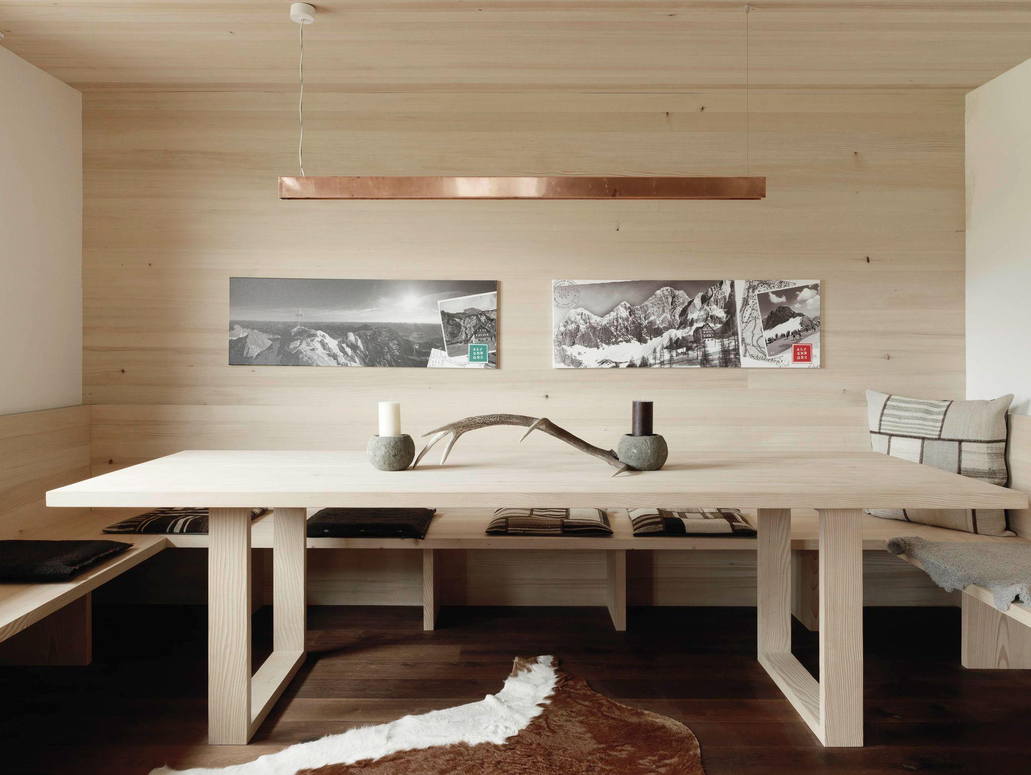 - eine große alpine Stube mit Essbereich inklusive voll ausgestatteter Küche und gemütlichem offenen Kamin