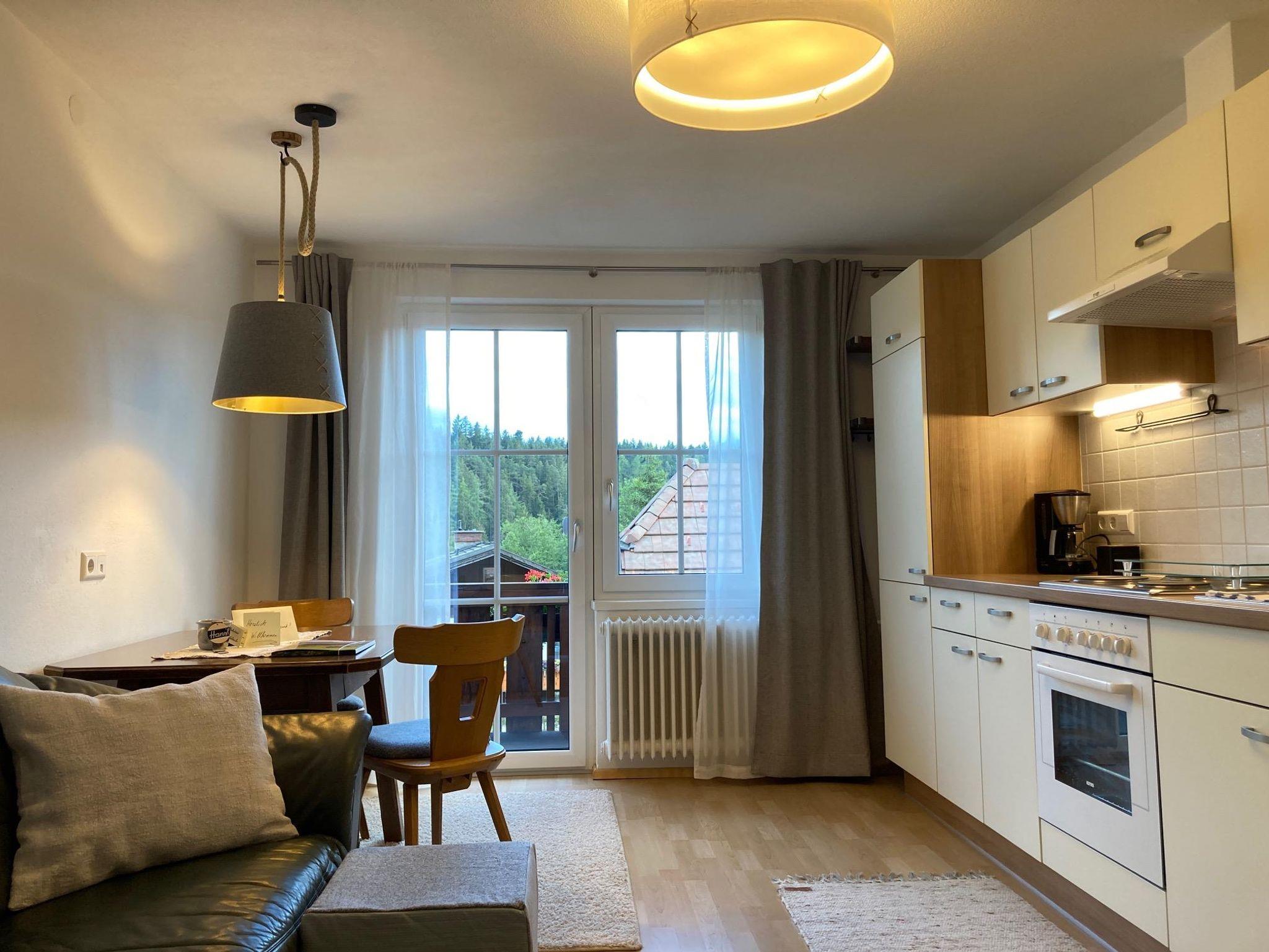 Das etwas kleinere Appartement Hansl bietet auf ca. 55m2 Platz für 2 Personen, ist ebenfalls im 1.Stock unseres Hauses und verfügt über ein Schlafzimmer, eine Wohnküche, ein Bad, einen Vorraum und ein extra WC. Der südseitige Balkon lädt dazu ein, auch mal draussen bei einem gemütlichen Frühstück in den Tag zu starten. Das Appartement Hansl hat ebenso einen separaten Eingang, eigenen Parkplatz sowie einen Ski- bzw. Bikeabstellraum.