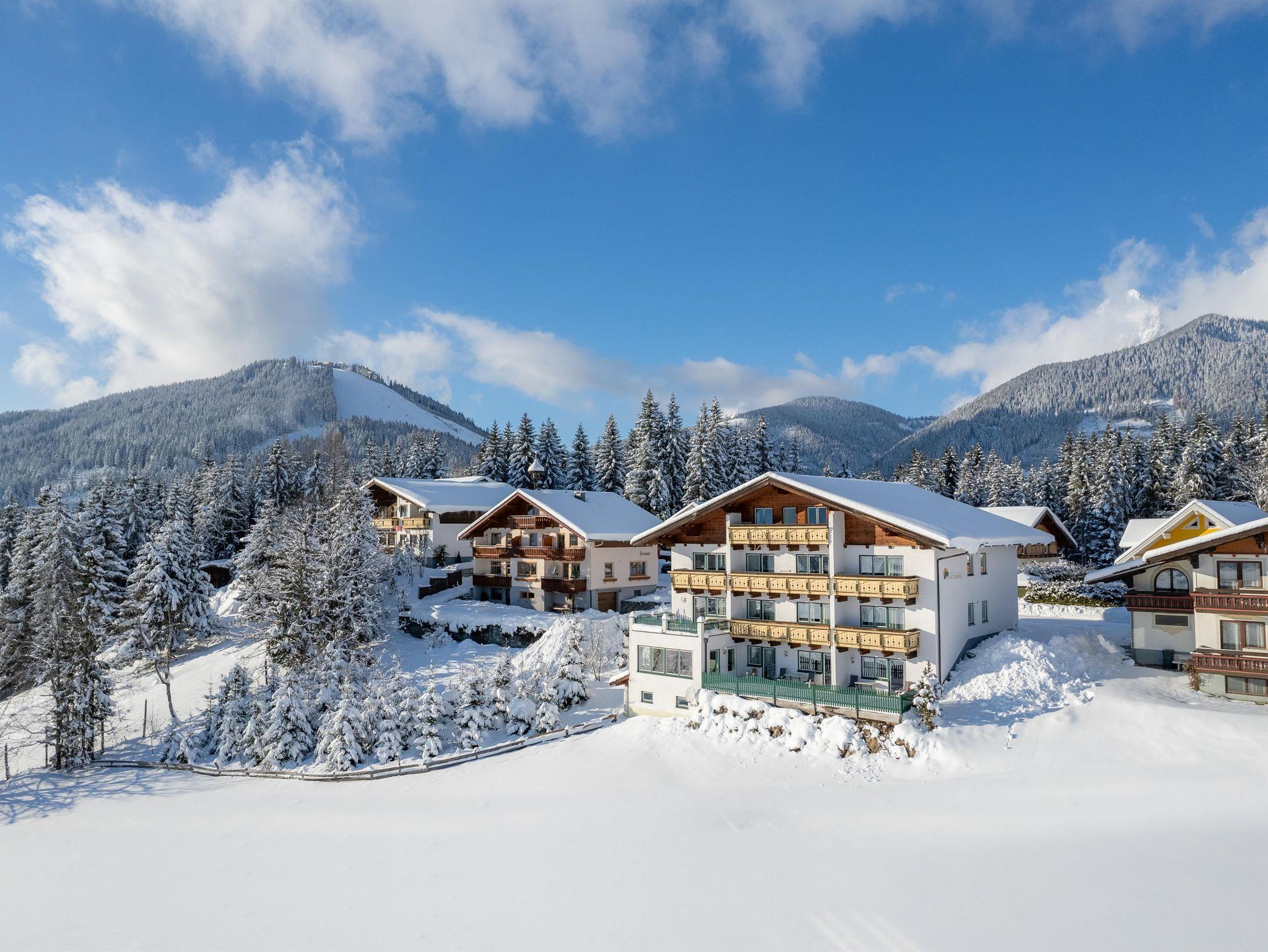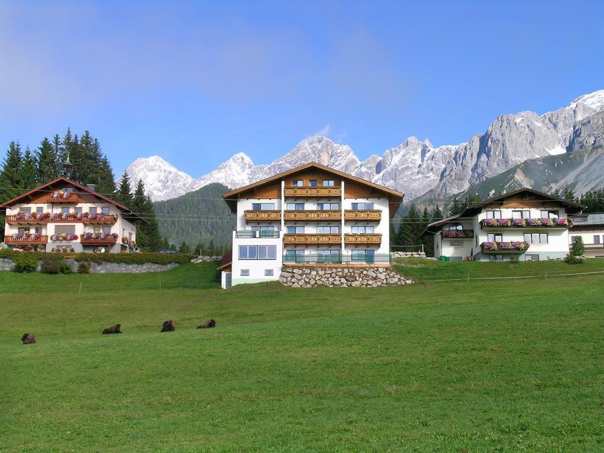 Unser Aparthotel befindet sich in sonniger Südlage am Fuße des Dachsteins. Genießen Sie die Vorzüge unserer exklusiv und modern eingerichteten Ferienwohnungen mit Südbalkon, großzügigem Wohnraum, Sat-TV, Telefon, Internet und einer vollausgestatteten Küche.