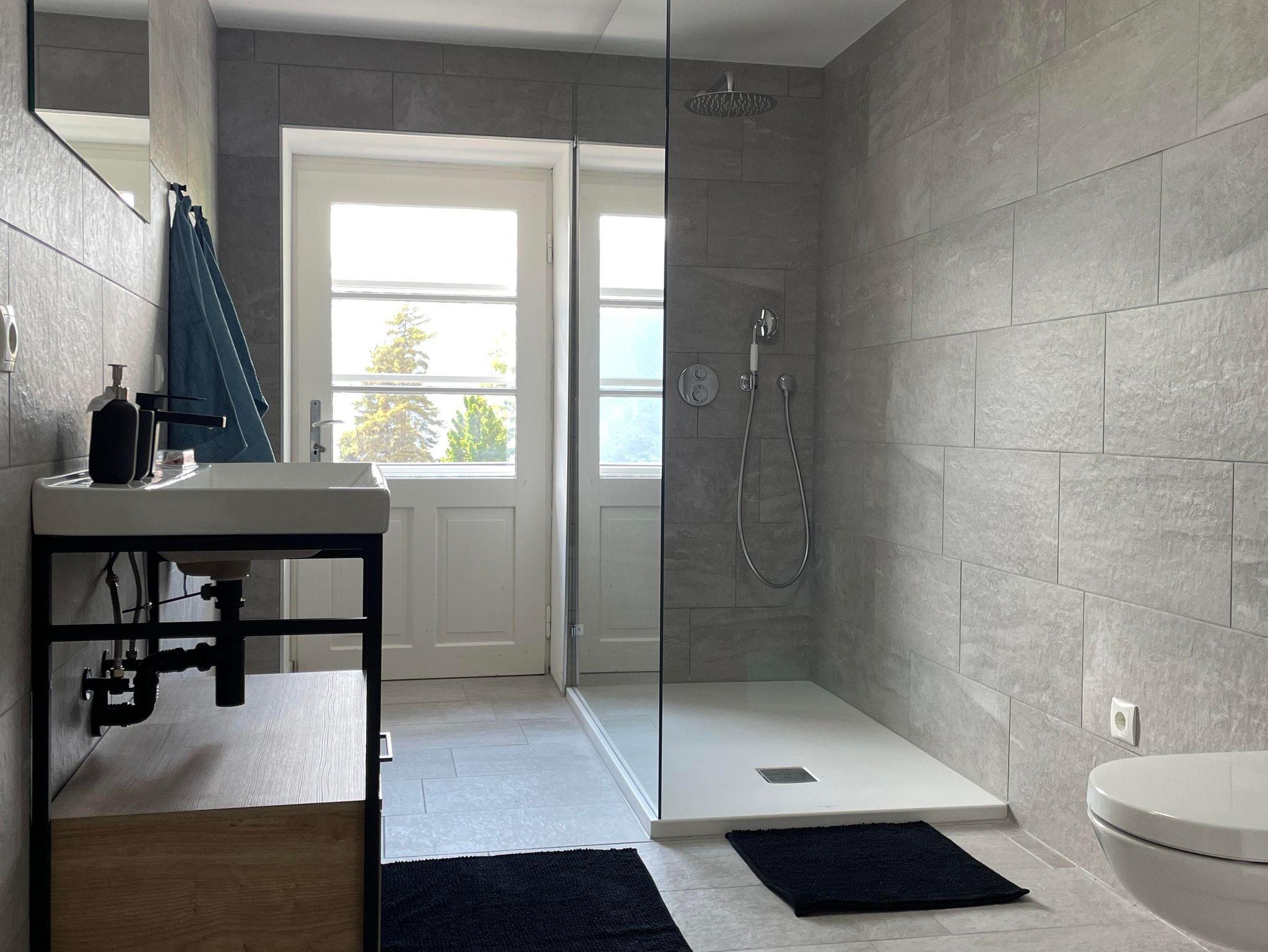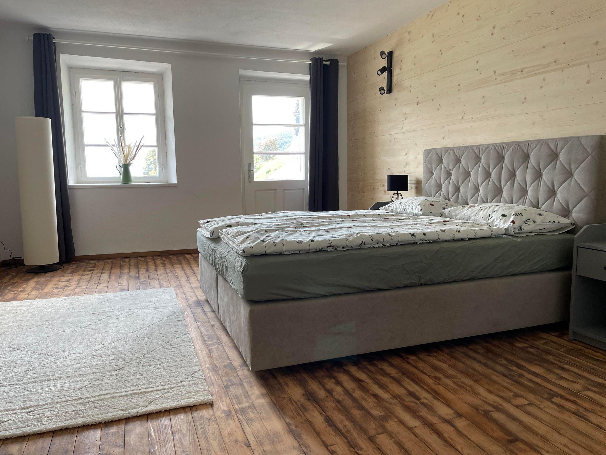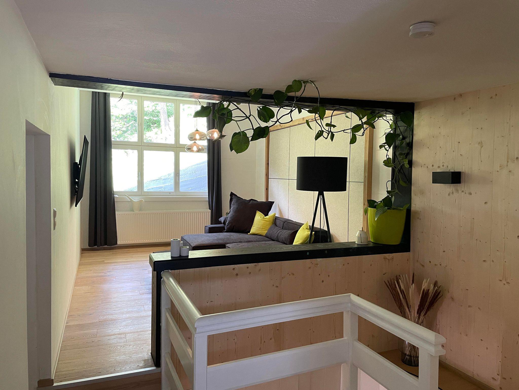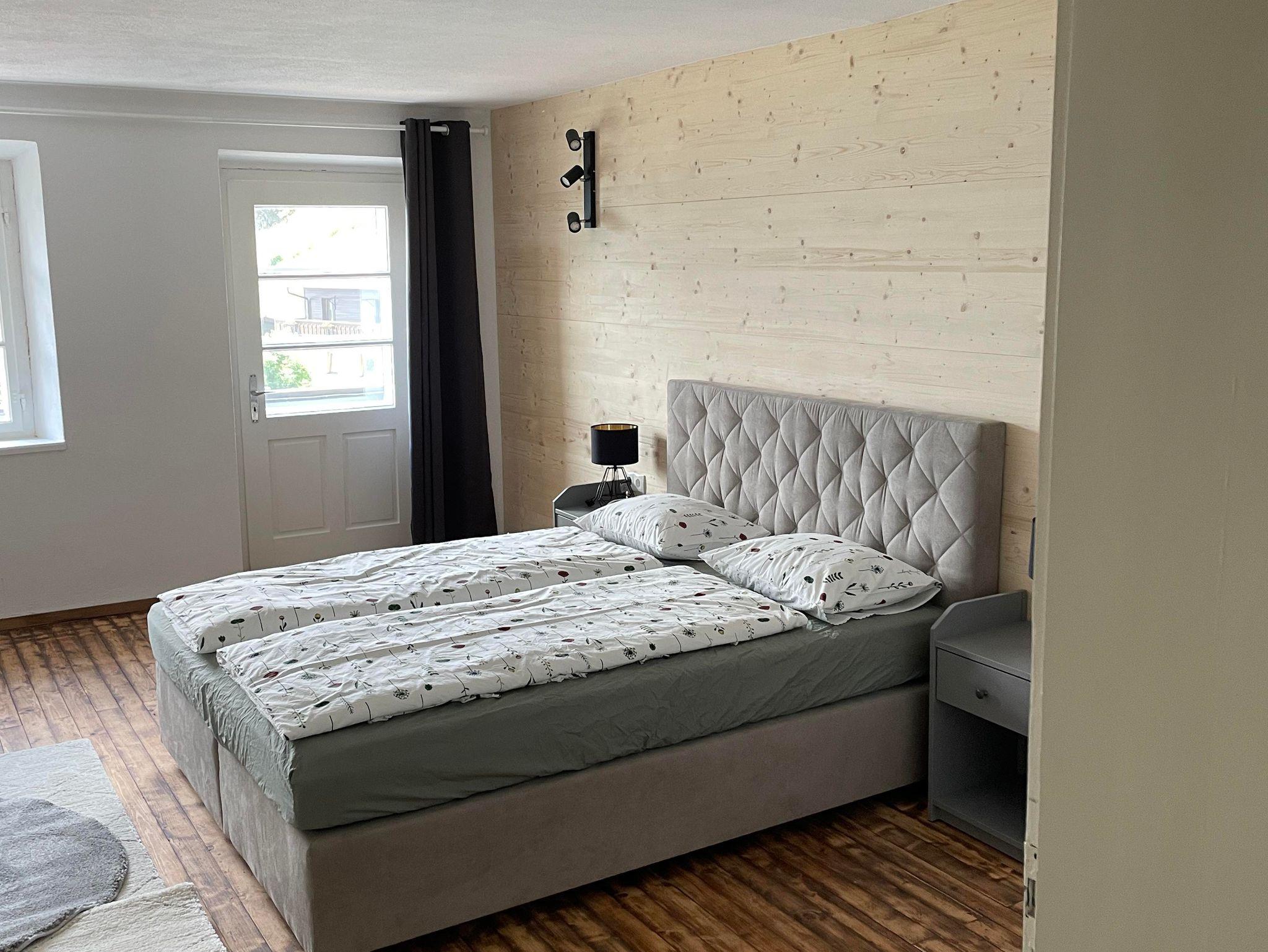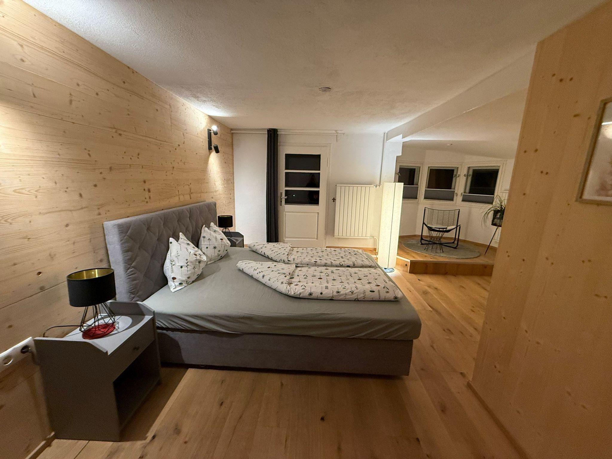 Im offenen Wohnbereich mit großer Fensterfront und Kamin entsteht schnell das Gefühl angekommen zu sein. Vom Balkon oder der Sonnenterrasse aus blickst Du direkt auf die umliegende Bergwelt. Nach einem Tag in der Natur lädt die Terrasse zum Grillen oder einfach zum Durchatmen ein.
