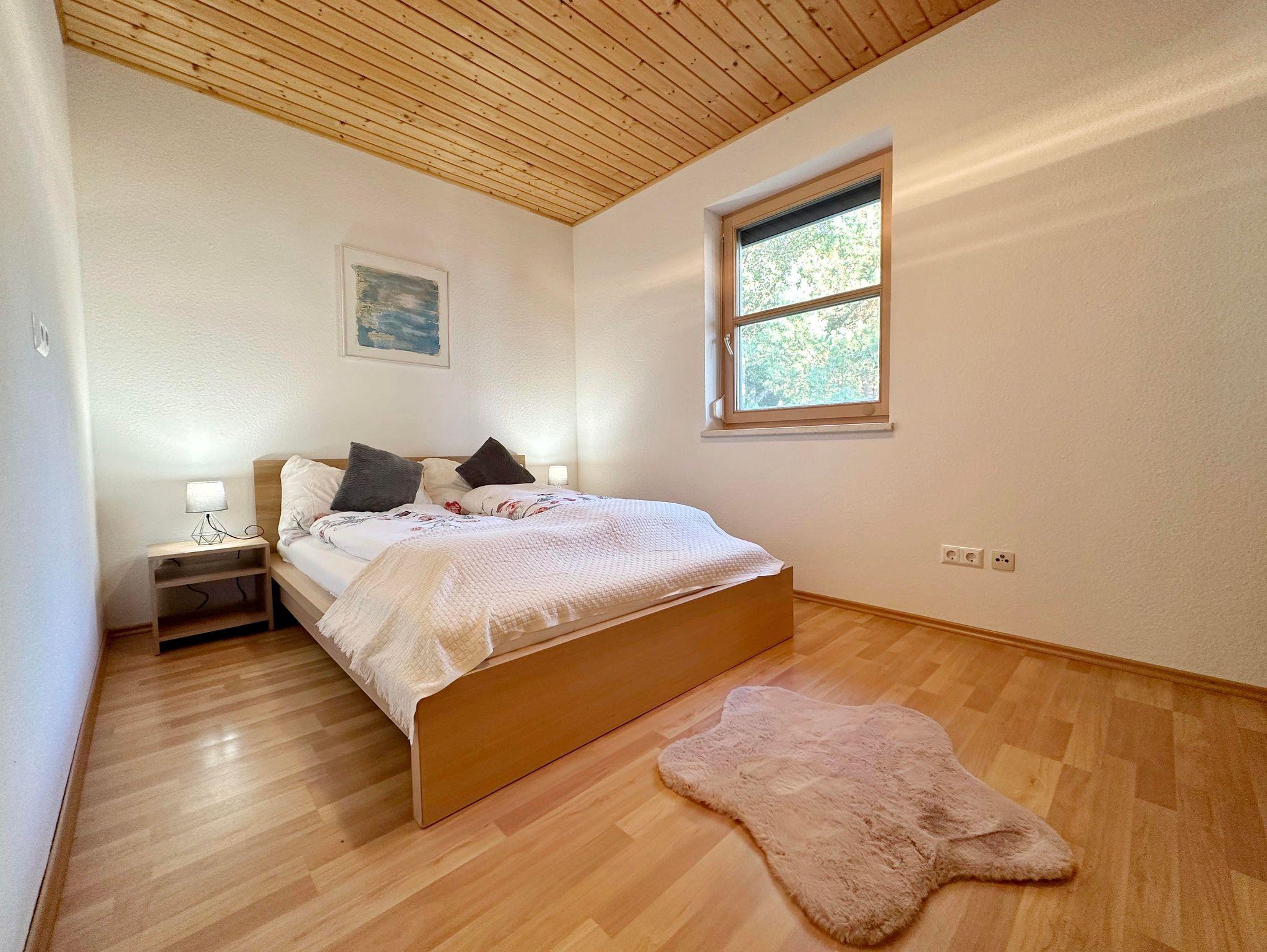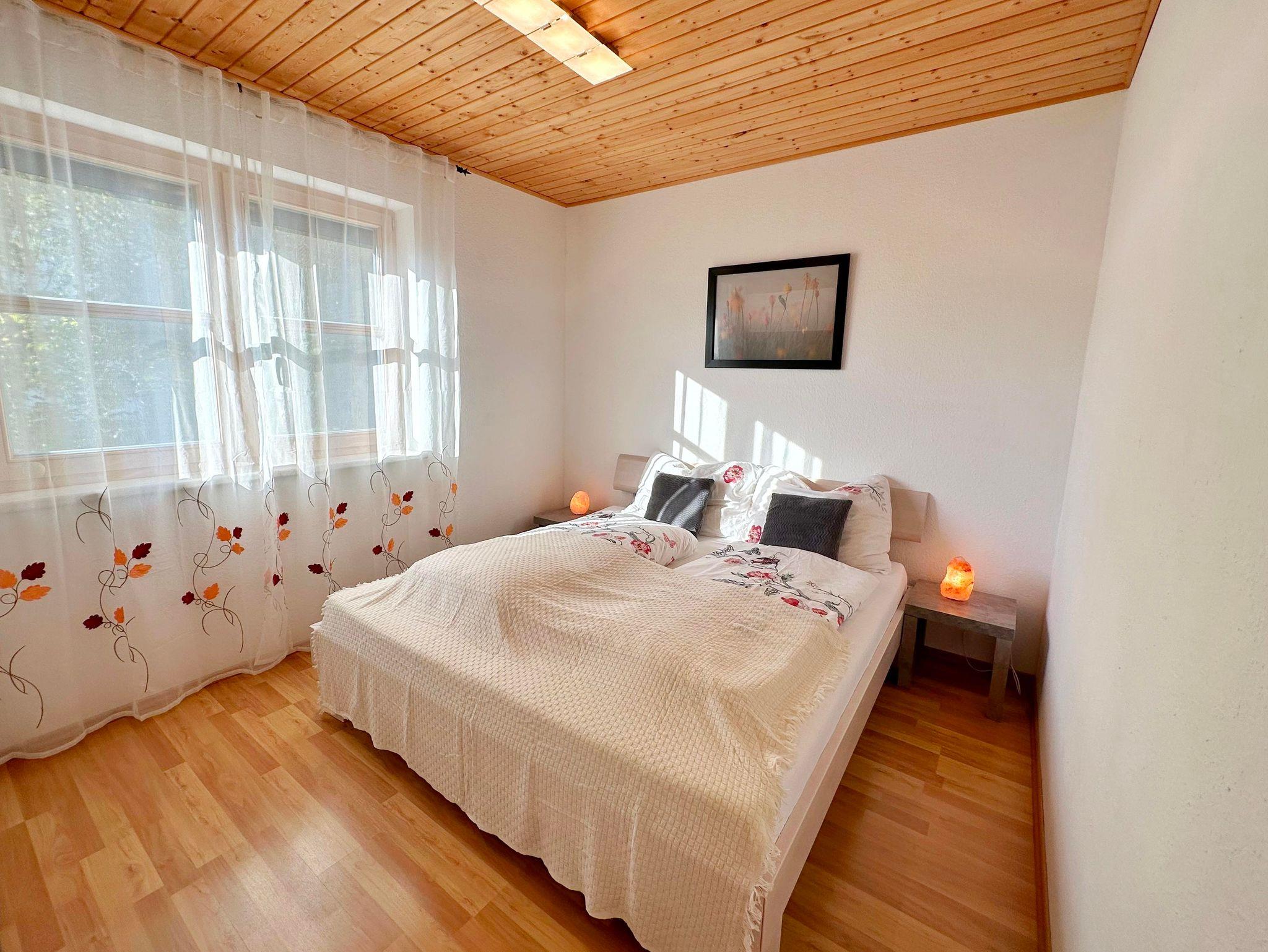Das gemütliche Ferienhaus mit 80 m2 Wohnfläche verfügt über 2 Schlafzimmer (1 großes Doppelbett, 1 Doppelbett und 1 Ausziehsofa), 1 Wohn- Esszimmer (mit Ausziehsofa), 1 vollausgestattete Küche, 1 Badezimmer mit Dusche und Badewanne, 1 separates WC, 1 Yogabereich, 1 Infrarotkabine sowie 1 Garage.