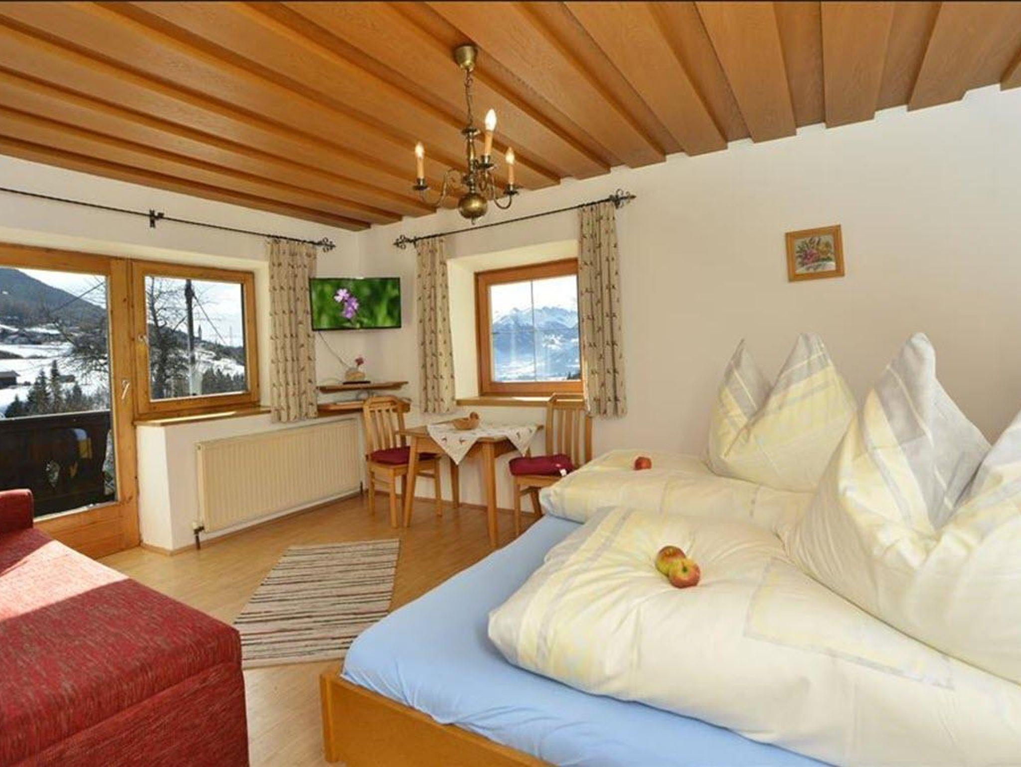 Gemütliches, sonniges Appartement für 2-3 Personen im ersten Stock mit Balkon, TV, schöne Aussicht auf die Bergwelt mit Blick auf die Kalkkögel, Zillertaler Alpen und den Hausberg Reitherspitze. Neue Küche anbei mit ebenfalls Zugang zum Balkon incl. Geschirrspüler und gemütlicher Sitzecke. Es besteht bei diesem Appartement noch ein DZ mit Dusche und WC und TV gleich anbei dazuzubuchen.