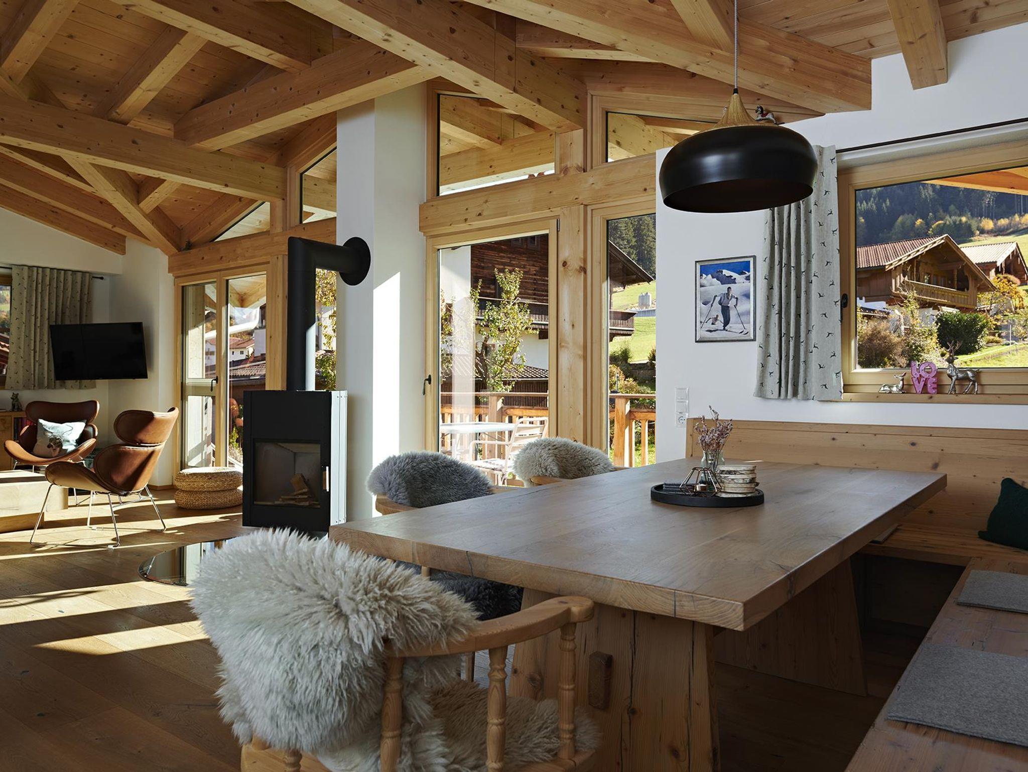 Mit einem atemberaubenden Panoramablick auf das Rofangebirge, auf weite Wiesen, Alpenglühen in den Abendstunden und einer himmlischen Ruhe lädt das Chalet zu traumhaftem Sommer- und Winterurlaub ein.