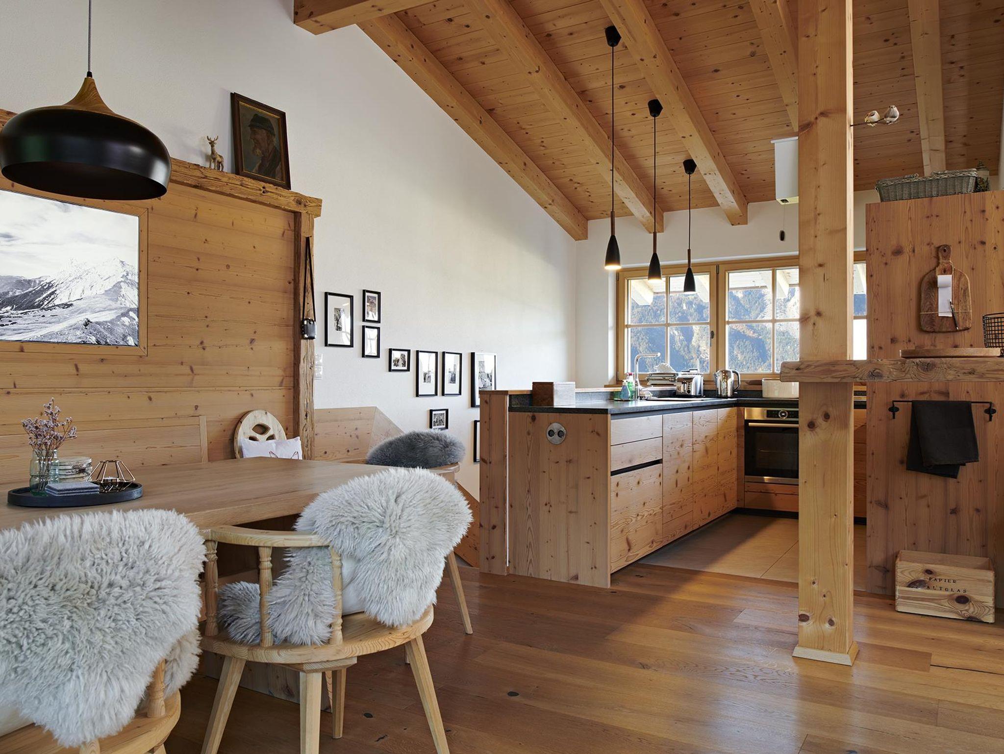 Das traditionelle Chalet ist im modern-alpinen Design eingerichtet. Alle Zimmer sind Naturzimmer mit viel Holz zum Wohlfühlen. Mit 130 qm verfügt das Chalet Matty über vier Schlafzimmer, in dem acht Personen bequem Platz haben, zwei Bäder mit Dusche und/oder Badewanne, einem riesigen Wohnbereich mit offener Küche, gemütlichem Loungebereich, 180 Grad drehbarem Kamin und uriger Sitzecke mit großem Esstisch und viel Platz für unvergessliche Stunden mit Freunden oder der Familie. Balkon und Terrasse laden mit Outdoormöbeln, Loungeliegen und Sonnenschutz zum Relaxen und in die Ferne schauen ein.
