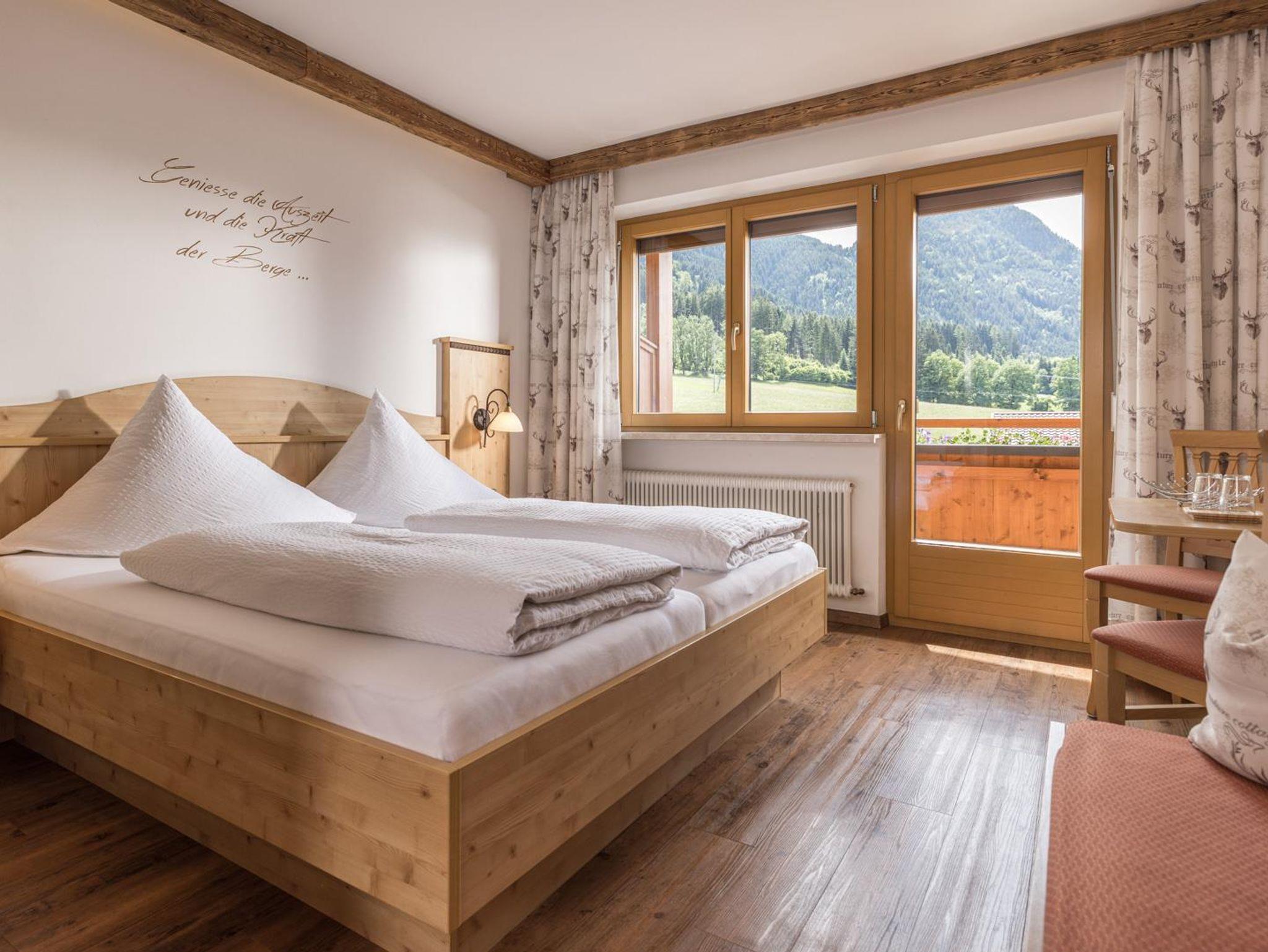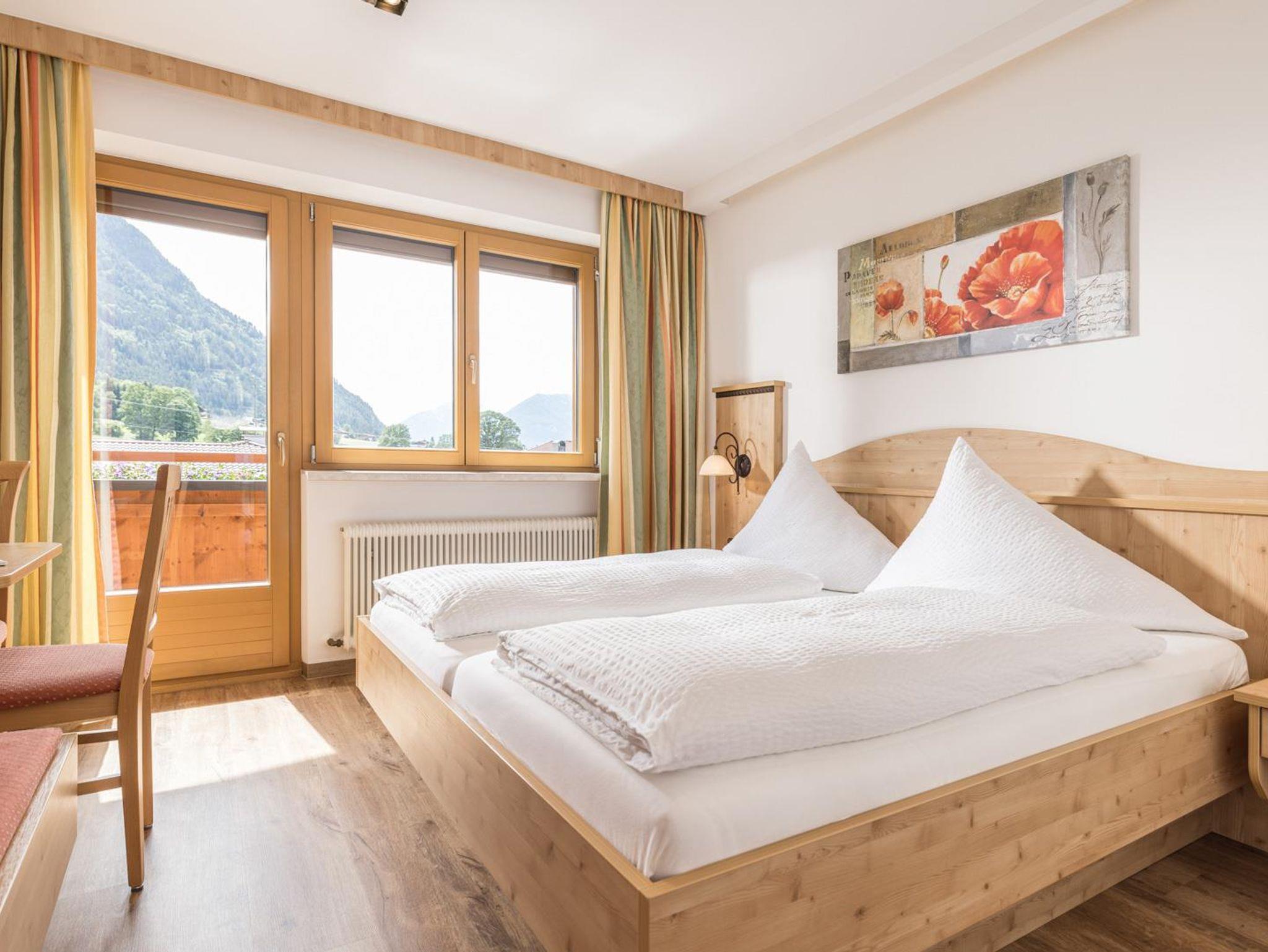 In der Pension Alpina sind Sie bestens untergebracht in unserem Doppelzimmer Wellness mit Dusche/WC, Fön, Rolläden, Handtücher, Radio, Flat-TV und Balkon mit herrlichem Blick auf die Bergwelt von Reith im Alpbachtal.