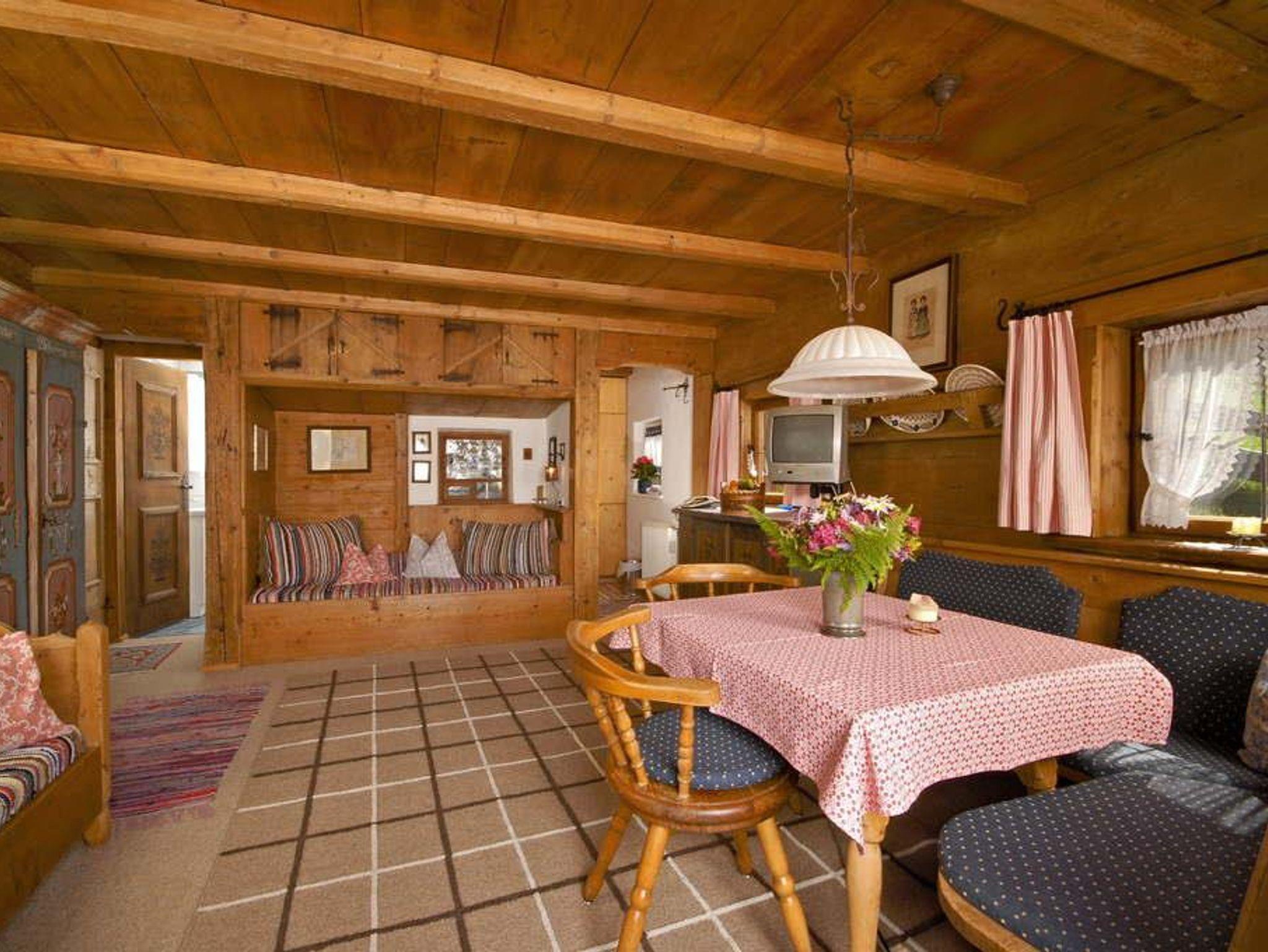 Die Wohnung umfaßt einen Wohnraum mit Eckbank und Bauerntisch für 4 Personen (in diesem Raum ist eine Bettnische für 2 Personen untergebracht, die tagsüber als Couch verwendet wird), einen Schlafraum für 2 Personen mit eingebauten Schränken, eine kleine Küche mit E-Herd und Kühlschrank (keine Spülmaschine!), ein Bad mit WC, Dusche und Waschbecken