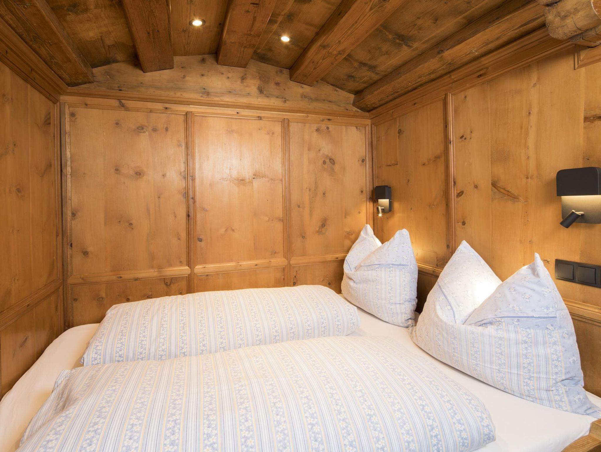 Die Familiensuite Tirol ist mit 116 m2 Wohnfläche überaus geräumig und überzeugt mit einem besonders gemütlichen Ambiente sowie einer hochwertigen Ausstattung im alpinen Chalet-Stil. Die Suite verfügt über insgesamt drei Schlafzimmer für bis zu sieben Personen (1 Doppelbett in der Bauernstube, 1 Schlafzimmer mit einem Boxspring-Doppelbett und einem zusätzlichen Einzel- oder Stockbett sowie 1 Schlafzimmer mit einem Boxspring Doppelbett). Zur hochwertigen technischen Einrichtung der Familiensuite gehören drei Flatscreen TV-Geräte mit internationalen Kanälen, kostenloses Highspeed-WIFI, eine Stereoanlage mit Internetradio und ein für Laptops geeigneter Safe. In der Familiensuite Tirol kann nach Rückfrage maximal ein Zustellbett für eine weitere Person zum Preis von EUR 15,00 pro Übernachtung und ein Babybett (kostenfrei für Kinder bis 2 Jahre) platziert werden.