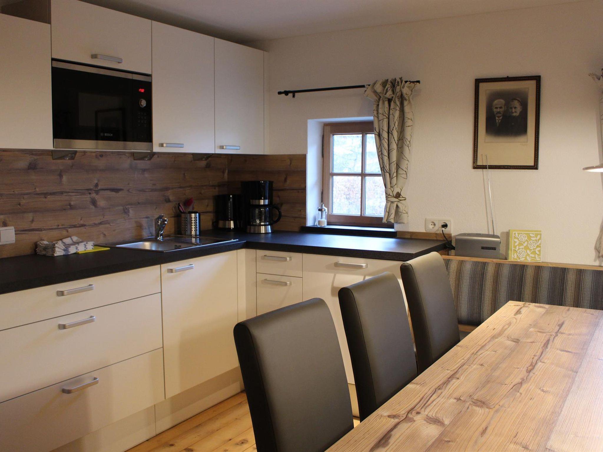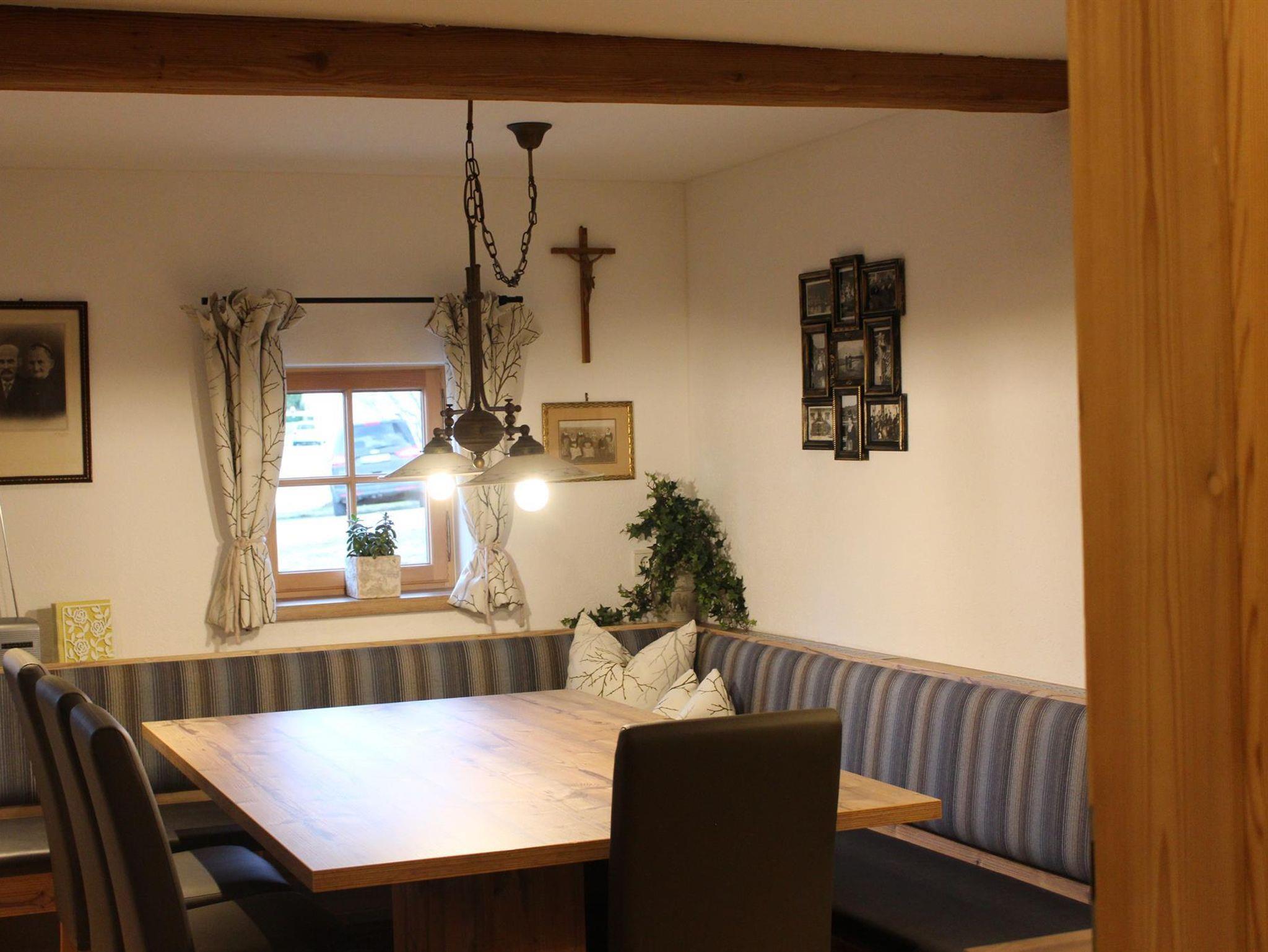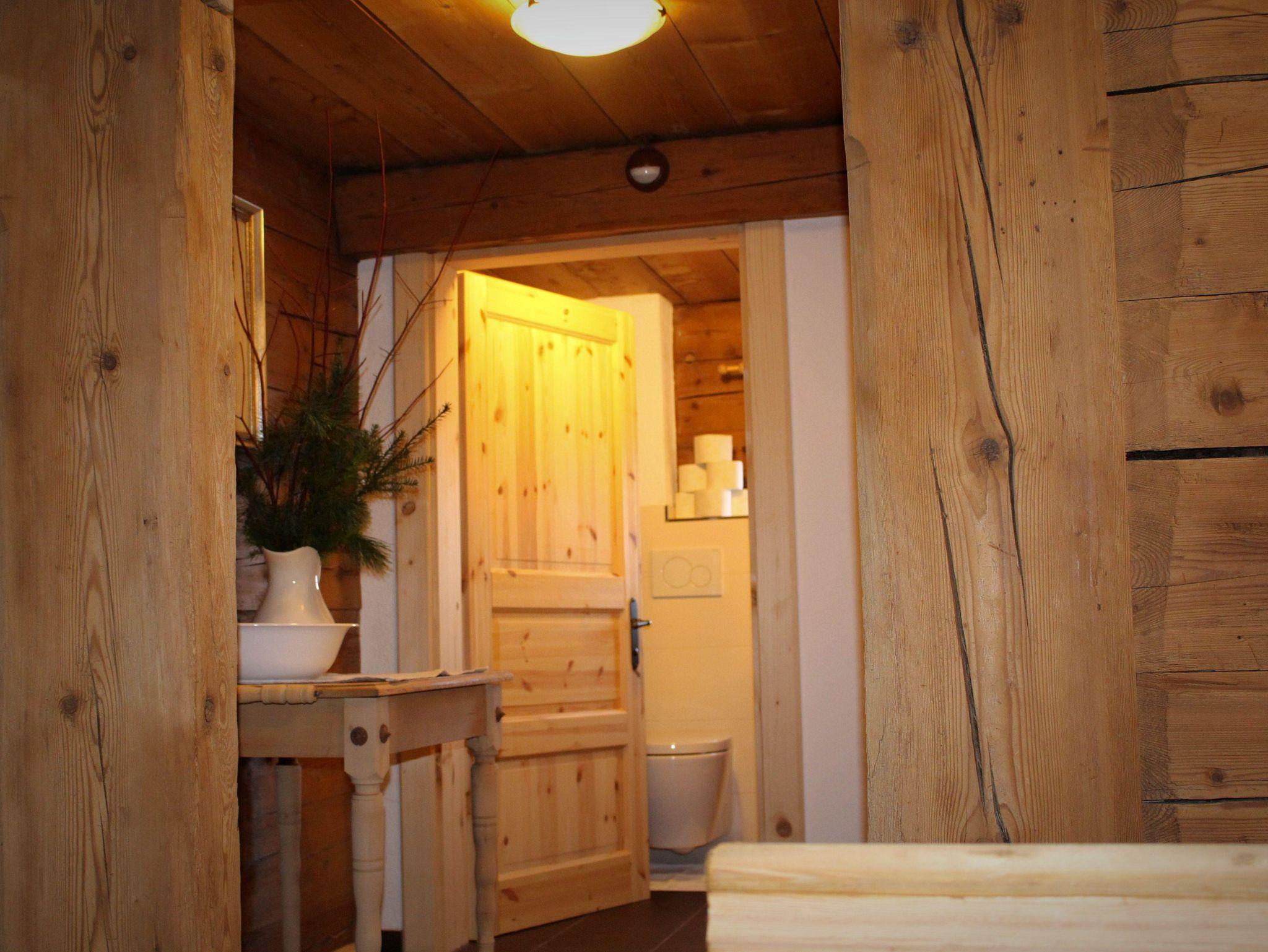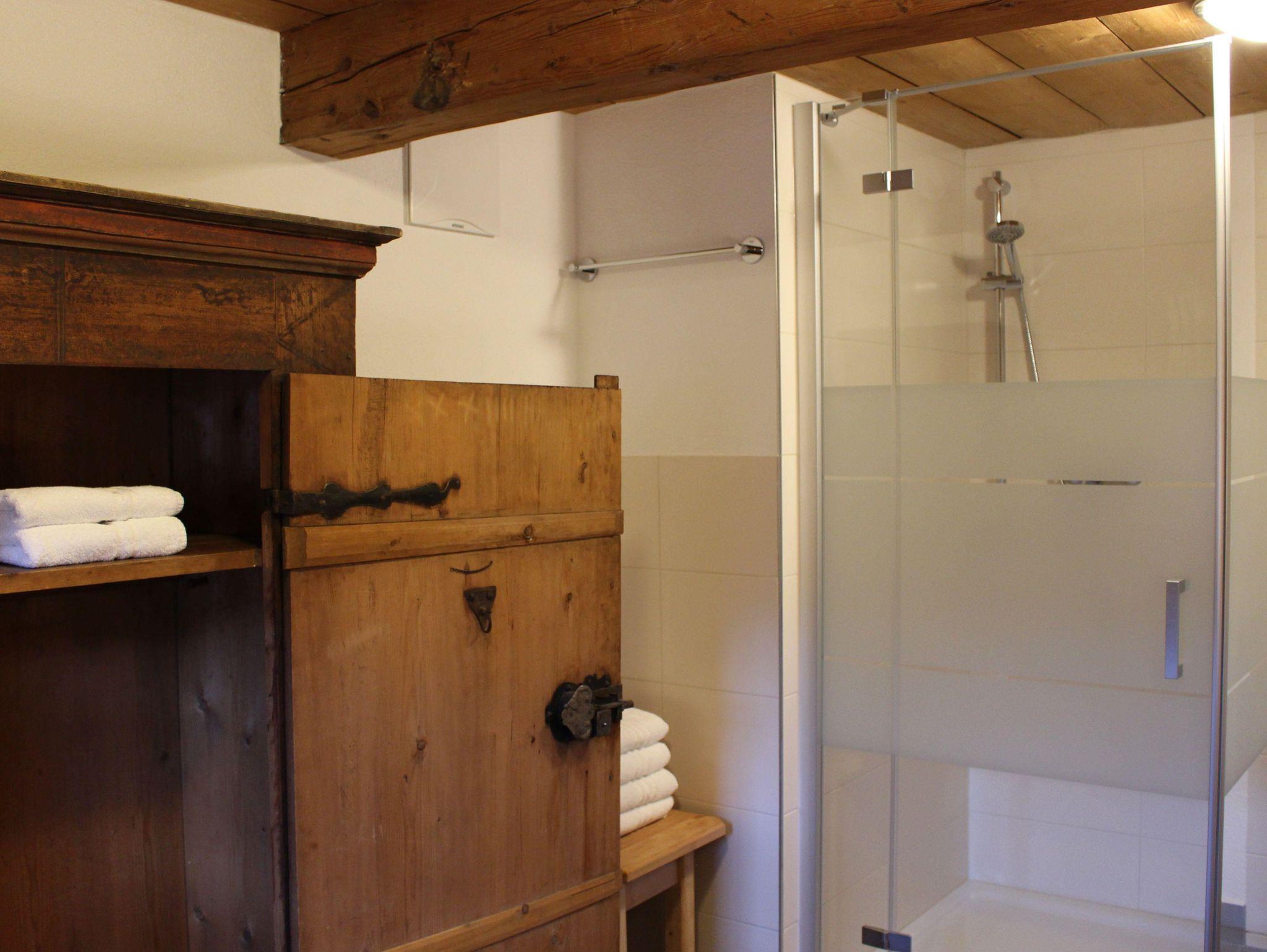 Im Erdgeschoss befinden sich die großzügige Küche mit großem Esstisch, die gemütliche Bauernstube mit Couchliege, ein WC, ein Bad mit Dusche und Badewanne sowie ein Doppelzimmer.