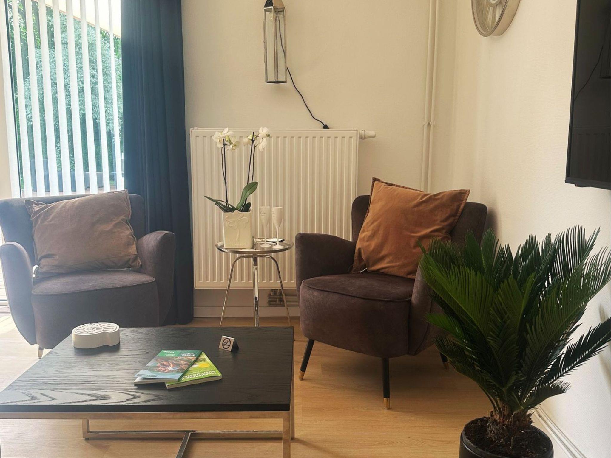 Studio 2 befindet sich im Erdgeschoss rechts von Studio 1 und kann bis zu 2 Personen beherbergen. Das Studio ist 38 m2 groß und hat einen offenen Charakter. Der Schlafbereich ist mit einem Doppelboxspringbett und einem Kleiderschrank ausgestattet. Das Studio ist hochwertig ausgestattet, verfügt über eine komplett eingerichtete Küche und hat einen privaten Sitzbereich an der Vorderseite, wo Sie sich geschützt entspannen können.
