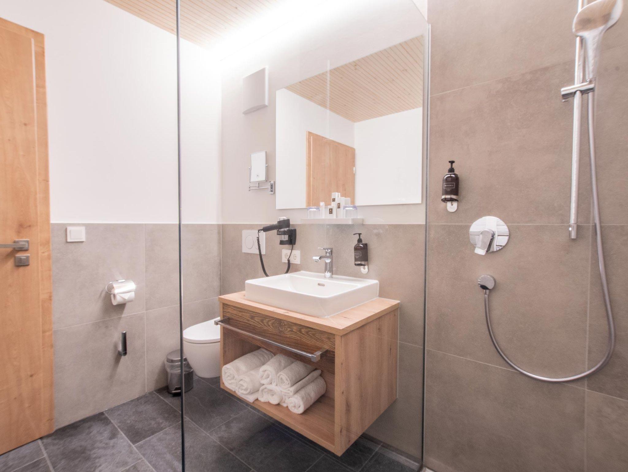 • Badezimmer mit Dusche/WC, Fön, Bademänteln & Pflegeprodukten