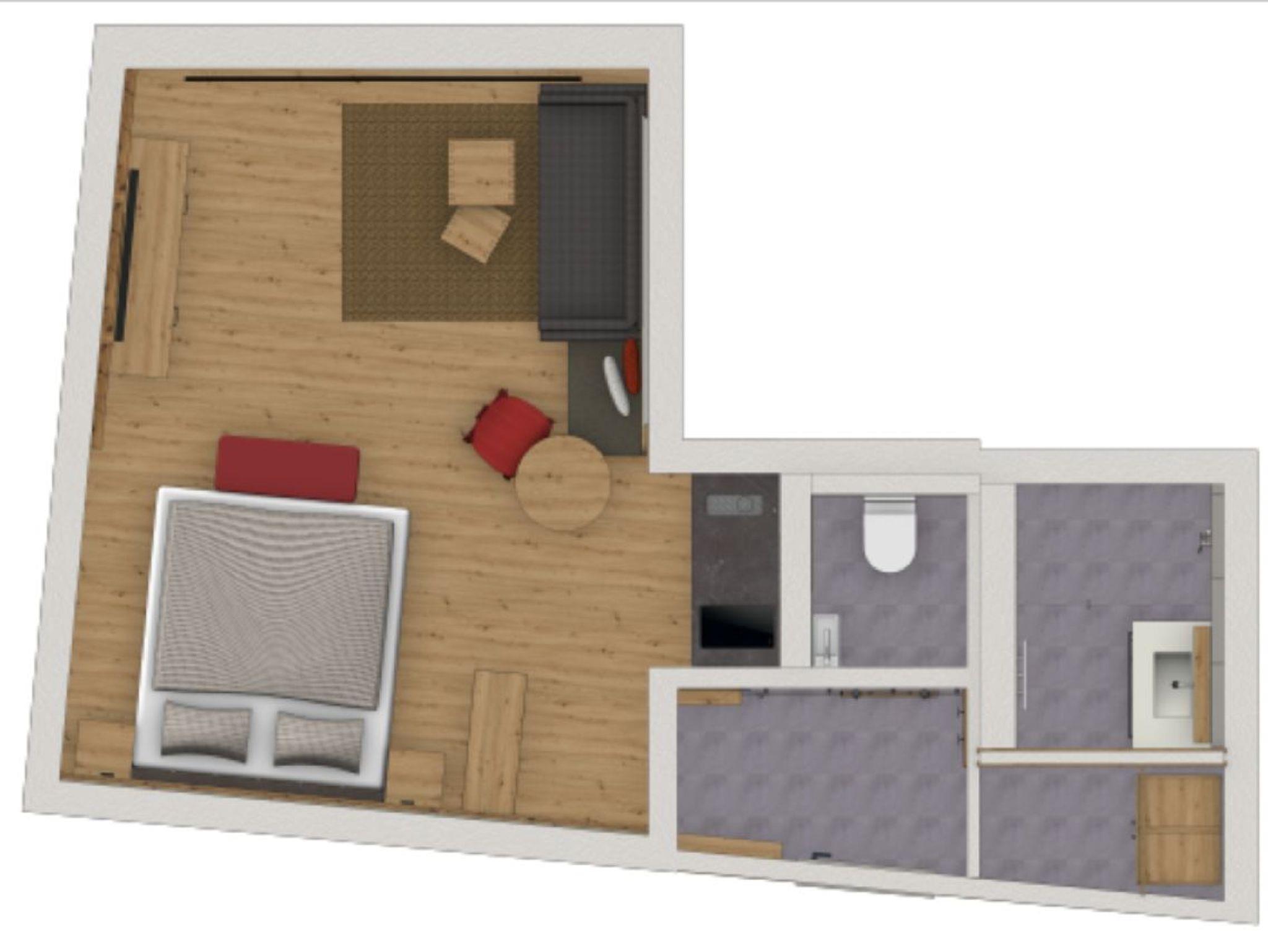 1-Zimmer Appartement mit Doppelbett, Premiumausstattung für 2 Personen. Das Appartement verfügt über einen Wohnbereich mit Kochnische, einen privaten Balkon, ein Bad mit Dusche, separate Toilette und Flatscreen-TV. Von Mai bis November ist das Bergbahnticket inklusive.