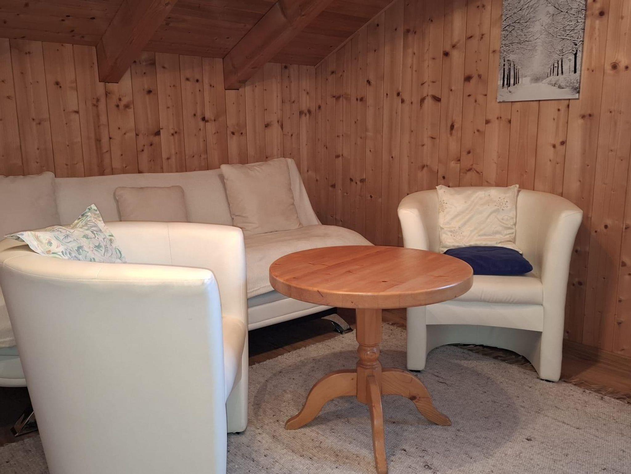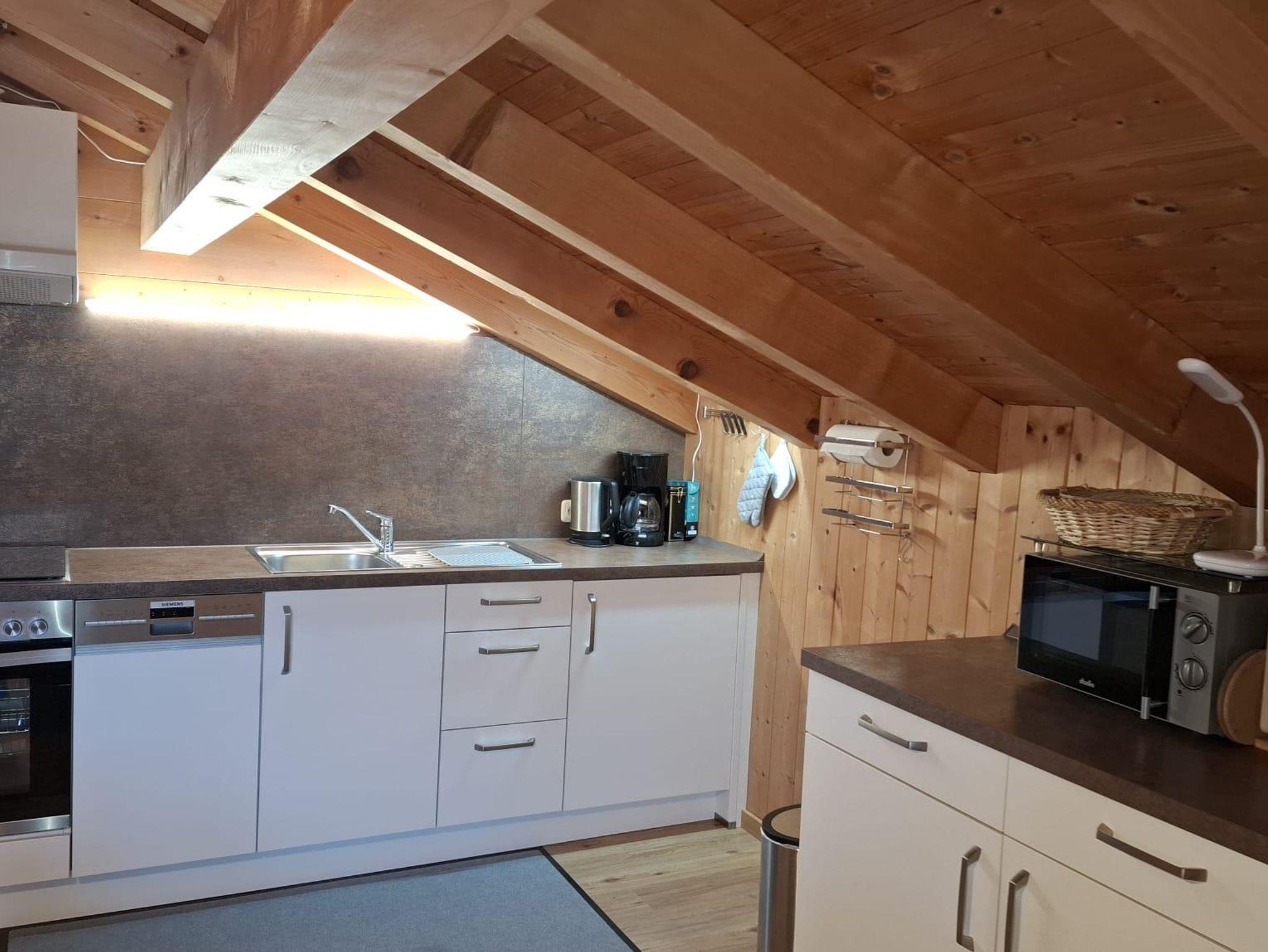 Herzlich willkommen in unserer charmanten Dachgeschosswohnung in Holzbauweise! Freuen Sie sich auf eine behagliche Atmosphäre und zwei separate Schlafzimmer (eines mit Doppelbett, eines mit zwei Einzelbetten 200 x 100 cm). Die Küche ist komplett ausgestattet, inklusive Spülmaschine und Essecke.