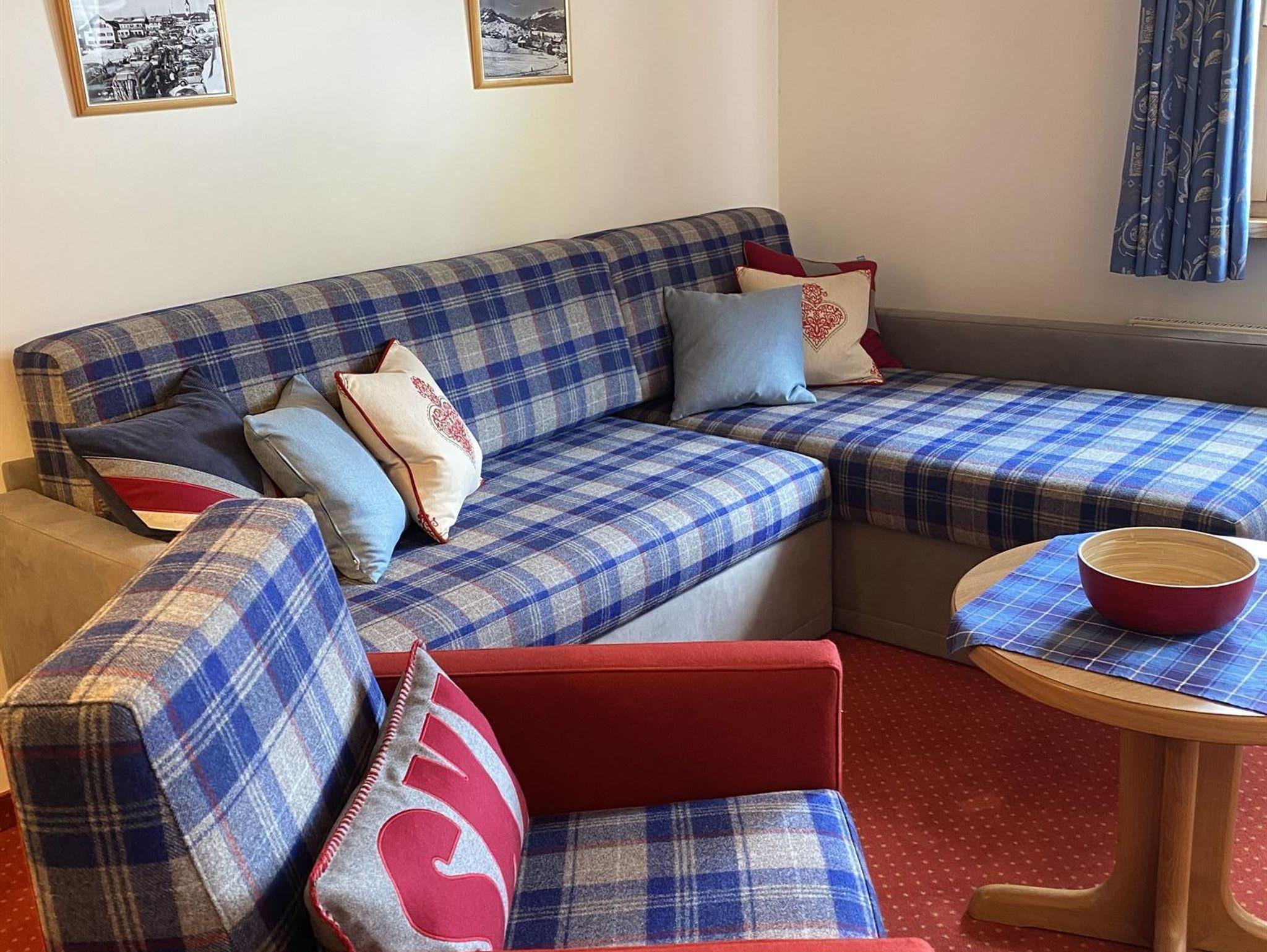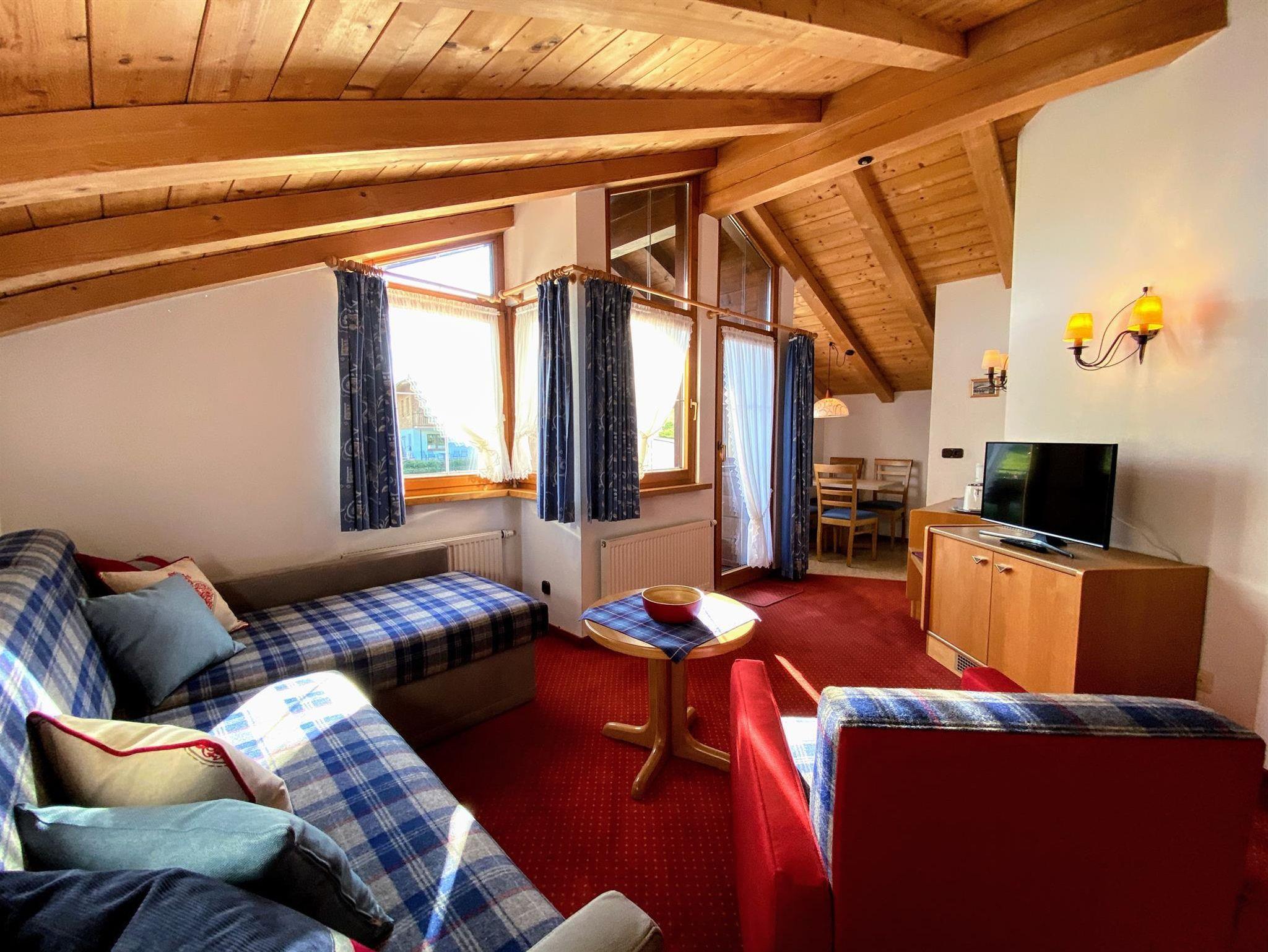 Zweiraumwohnung mit Wohnschlafraum unter ausgebautem Dach (Sichtbalkendecke) mit neuer moderner Möbellandschaft/ Schlafsofa, Kochnische mit neuer Essecke, Schlafzimmer mit Doppelbett, Dusche, WC separat, zwei Balkone mit herrlicher Bergsicht, neuer großer Flat SAT-TV, kostenfreies Highspeed Internet, WLan, Brötchenservice, Radio, Safe