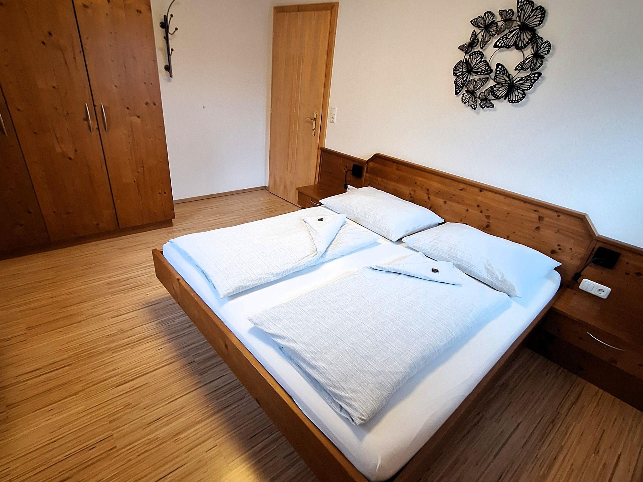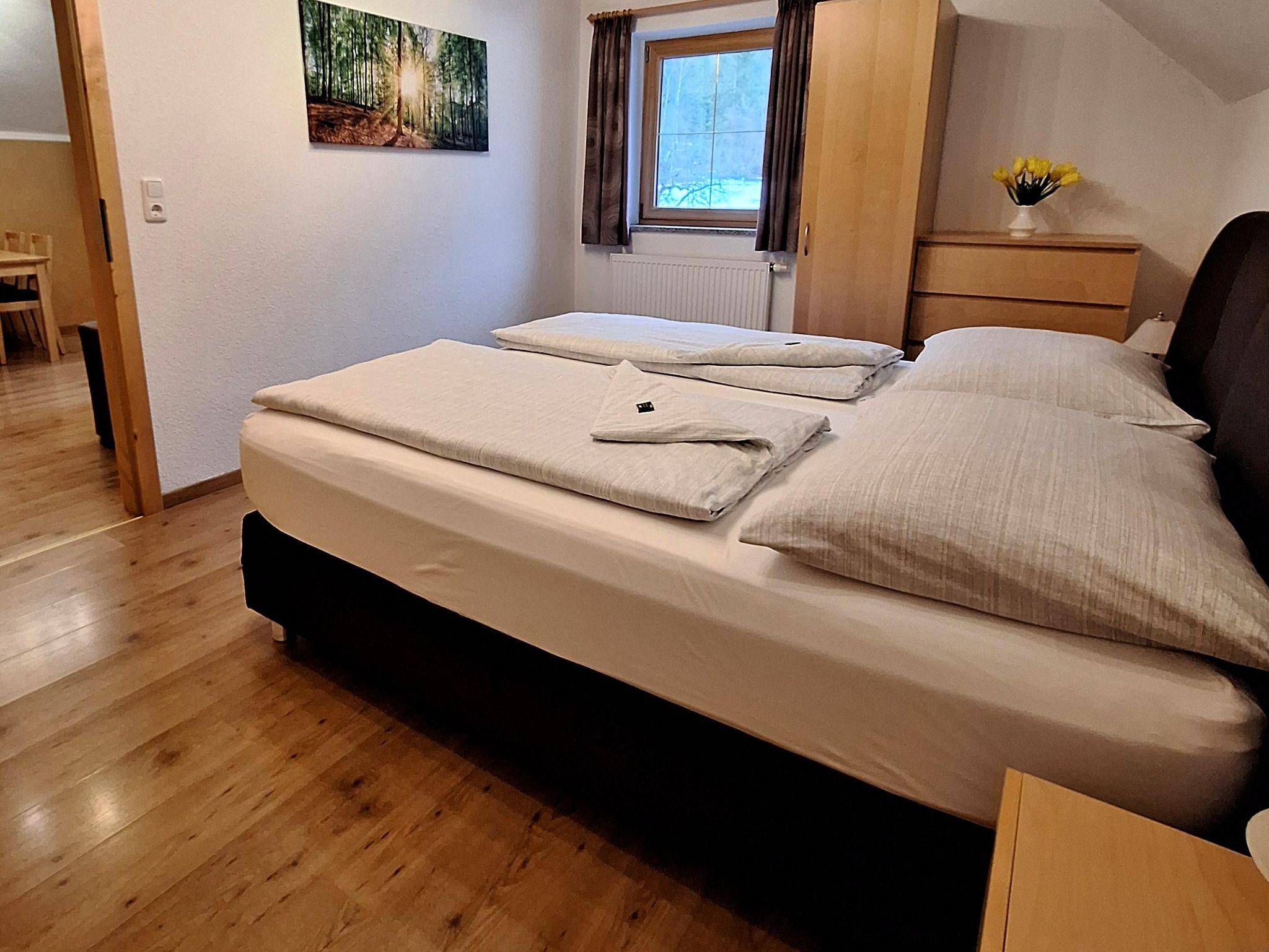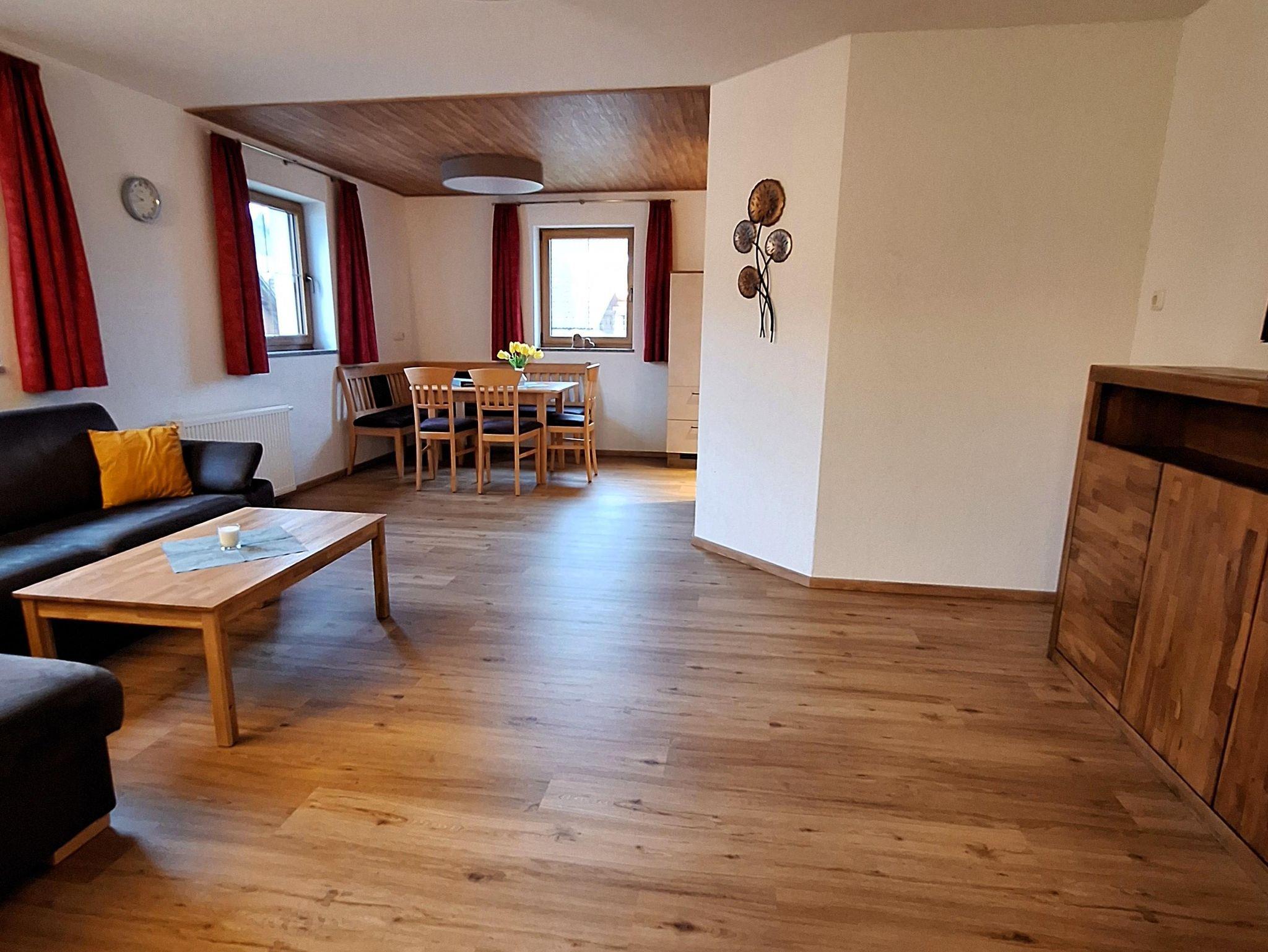Große Ferienwohnung mit 80m² für 1-7 Personen, ein Doppelbettzimmer, ein Kinderzimmer mit 3 Einzelbetten, Küche mit Geschirrspüler, großes Wohnzimmer mit Sat-TV, ausziehbarer Couch und Essecke, Dusche und WC getrennt. Die Wohnung befindet sich im 1. Stock.