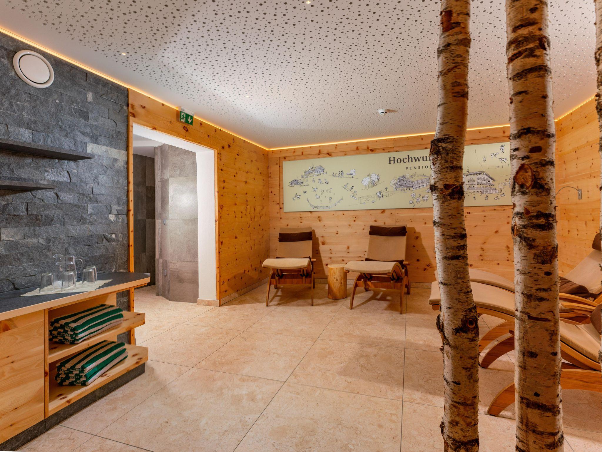 Um Ihnen eine sorgenfreie Zeit abseits vom Alltagsstress zu bieten, haben wir Ihnen einen Wellness-Bereich eingerichtet, der zum Schwitzen in der Sauna, zum Wohlfühlen in der Infrarotkabine oder unter der Wellnessdusche und zum Entspannen in unserem Ruheraum einlädt.