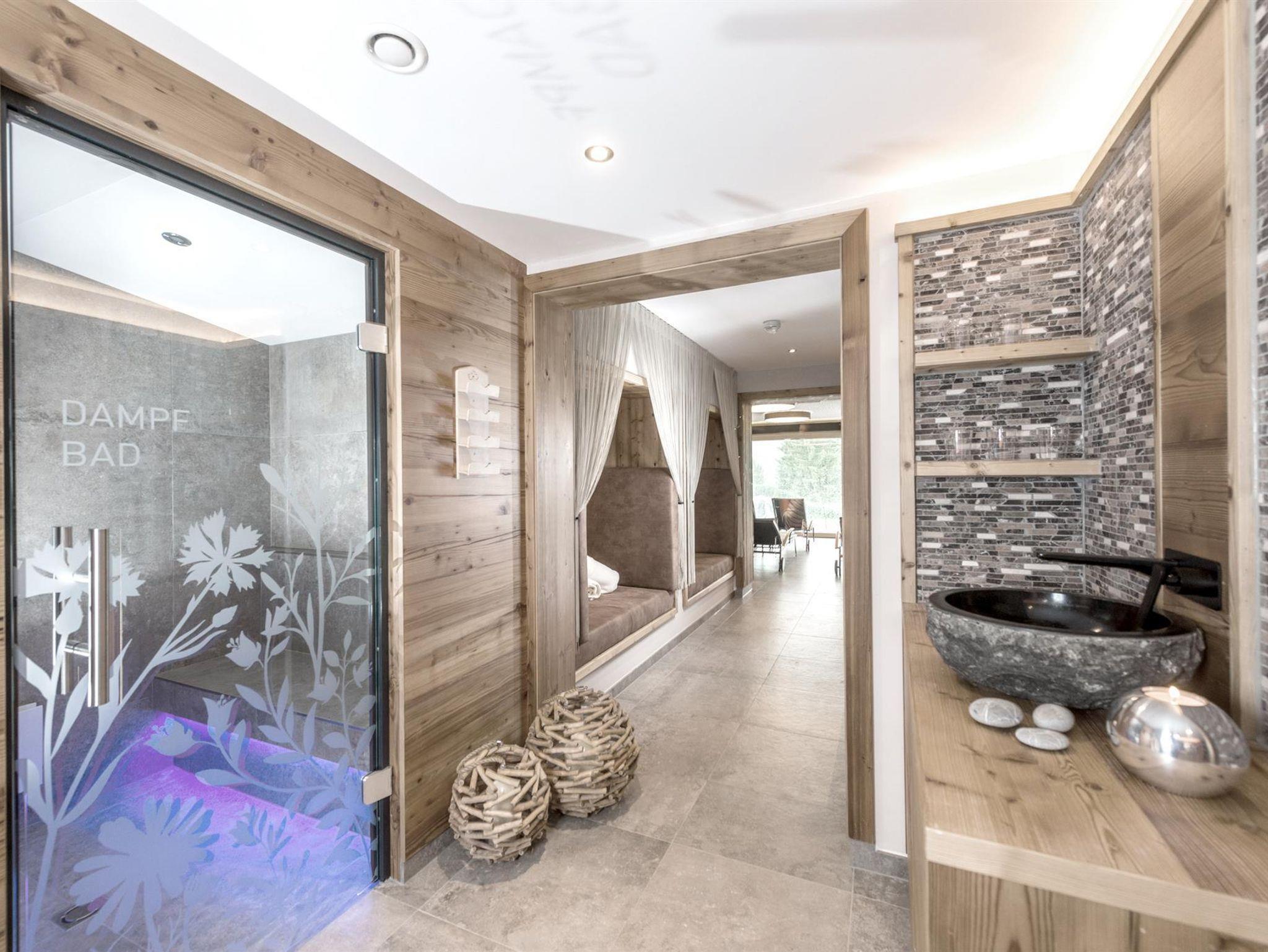 • feiner Wellnessbereich mit 4 verschiedenen Saunen, Ruheräumen, kuscheligen Ruheboxen, beheizter Aussenpool