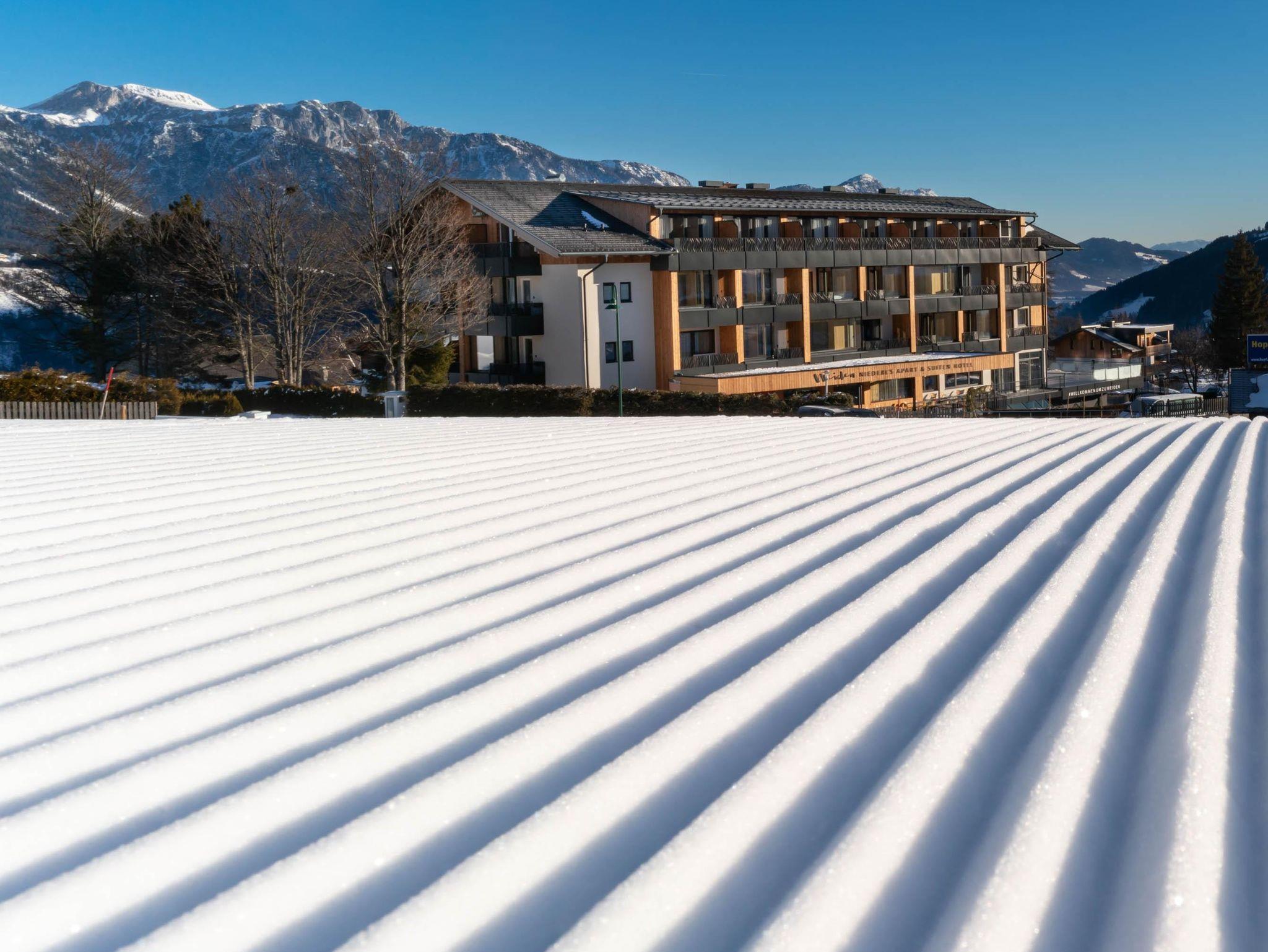 Das Hotel WEIDEN mit Wohnzimmerfeeling und innovativem Konzept hat erstklassige Lage am Hochplateau Rohrmoos oberhalb von Schladming. Im Skiurlaub direkt neben der Skipiste, im Sommerurlaub mitten in der Wanderregion Schladming Dachstein.