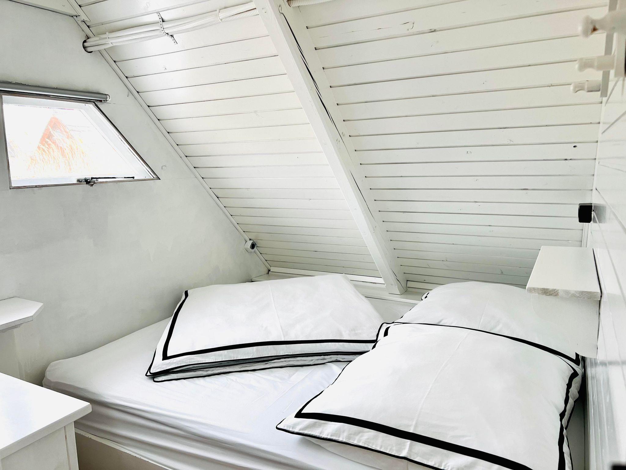 Das Ferienhaus Seehaus hat ein ebenerdiges, getrenntes Schlafzimmer mit einem Doppelbett. Das andere Doppelbett (mit Matratzen, aus Platzgründen gibt es kein komplettes Bett mit Beinen und Bett Haupt) befinden sich romantisch direkt unter dem Dach der Hütte und ist über eine Leiter zu erreichen. Die Betten im oberen Bereich sind für Personen mit eingeschränkter Beweglichkeit nicht zu empfehlen. Zusätzlich gibt es ein Schlafsofa, dieses wird anstatt dem oberen Bett auf ausdrücklichen Kundenwunsch für Sie vorbereitet, bitte schreiben Sie dazu nach Ihrer Buchung ein Mail.