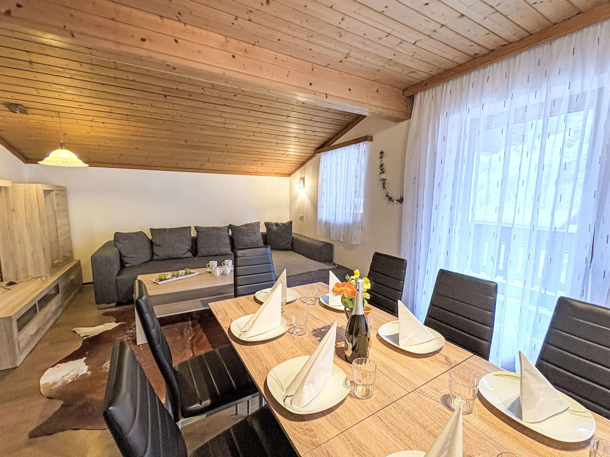 "Top 1", 5-room apartment 90 m2 on 2nd floor. Comfortable and tasteful furnishings: entrance hall. 2 double bedrooms, each room with shower/WC and satellite TV (flat screen). 1 double bedroom with satellite TV (flat screen). 1 room with 2 beds. Living/dining room with satellite TV (flat screen). Exit to the balcony. Small kitchen (oven, 4 ceramic glass hob hotplates, toaster, kettle, electric coffee machine) with dining table. Shower, 2 sep. WC's. Heating. 2 balconies. Balcony furniture. Very beautiful view of the mountains and the ski run. Facilities: Internet (WiFi, free). Please note: suitable for families. Non-smokers only. Smoke alarm, no lift. 50618-002323-2025