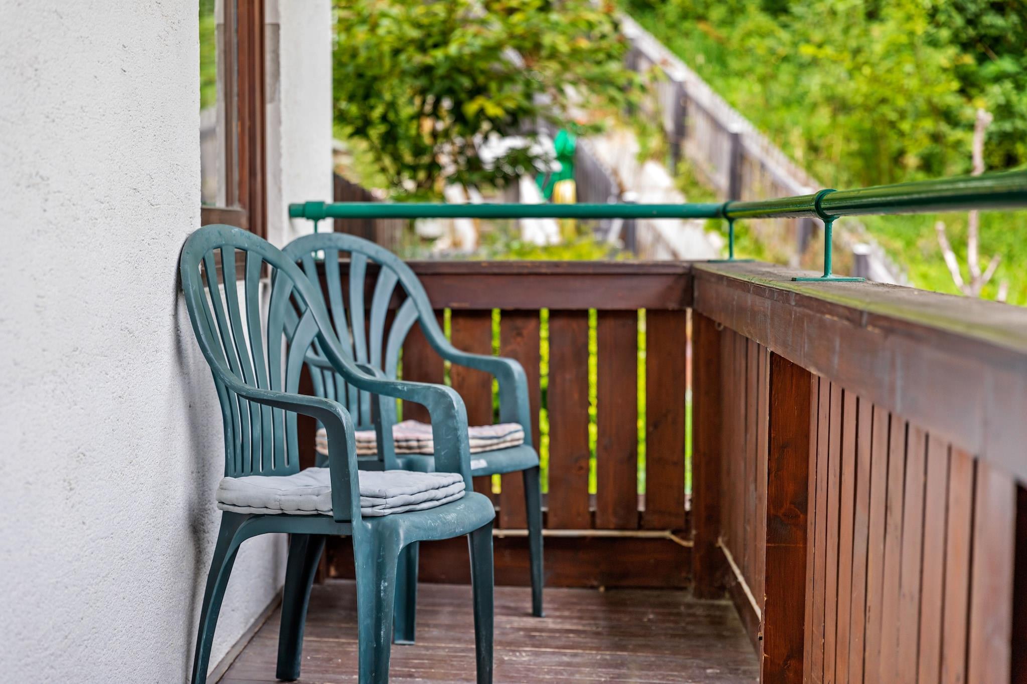 Kitchenette(cooker, microwave, fridge), Living/bed room(double bed, TV(cable)), bathroom(shower, washbasin, toilet), ski storage, coffee machine, balcony, garden, bicycle storage, parking