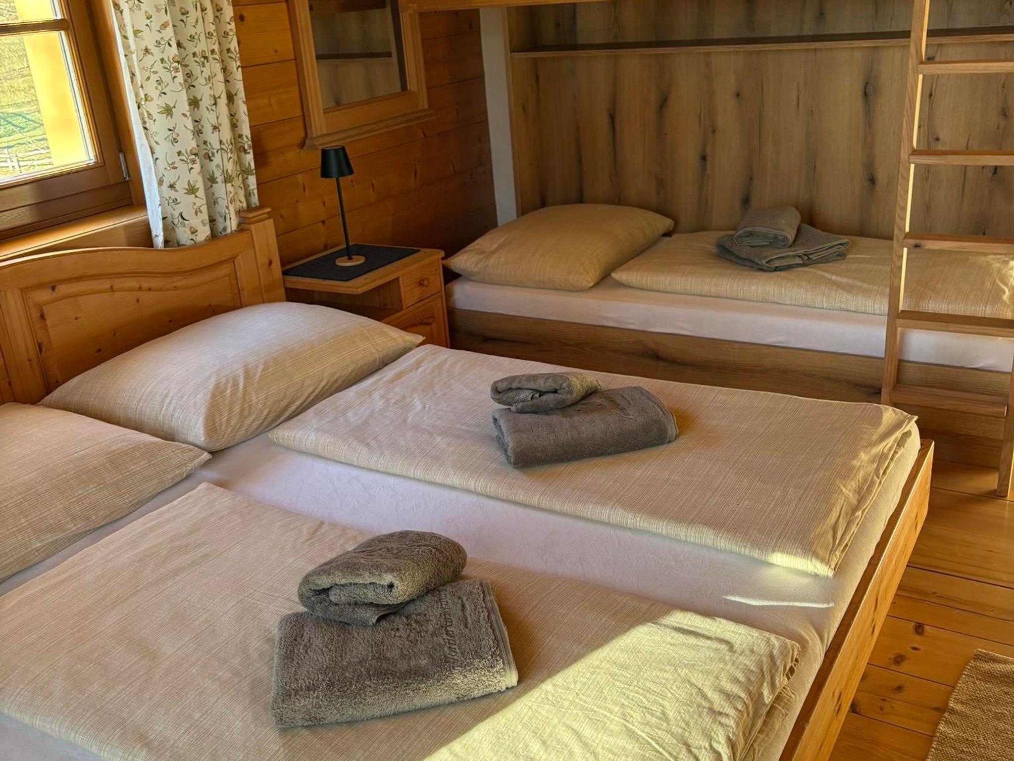 Lichtdurchflutete Räume, helles Holz und feines Leinen sorgen für Behaglichkeit in unserem Appartement mit Vorraum, Wohnküche mit Kochnische, Kühlschrank, kleinem Backofen, E-Herd, Wasserkocher, Kaffeemaschine, Toaster, Geschirr, Eckbank und Sitzgruppe, 1 sep. Schlafzimmer (Mehrbettzimmer), DU/Badewanne, sep. WC, südseitiger Balkon mit Bergblick und Sitzgelegenheit, Kabel-TV, gratis W-LAN und ein zusätzliches Doppelzimmer mit DU/WC, Kabel-TV und gratis W-Lan!