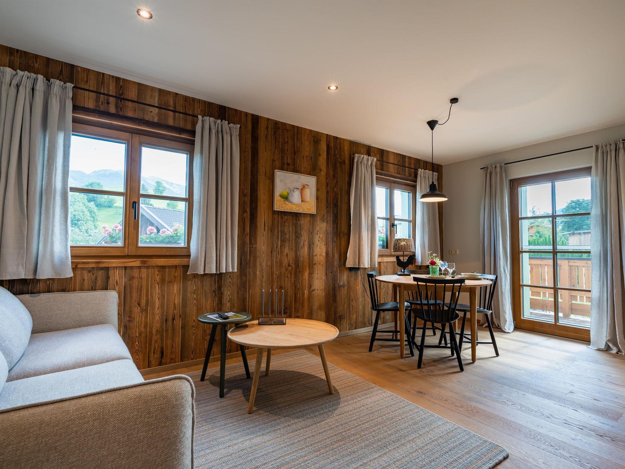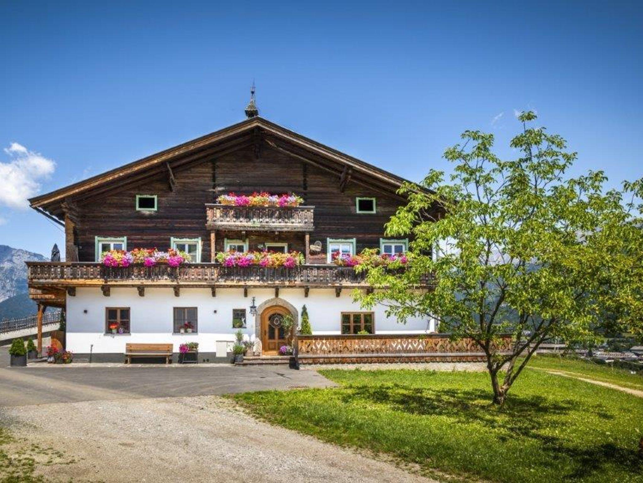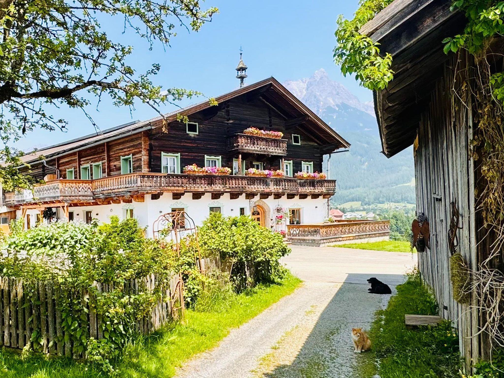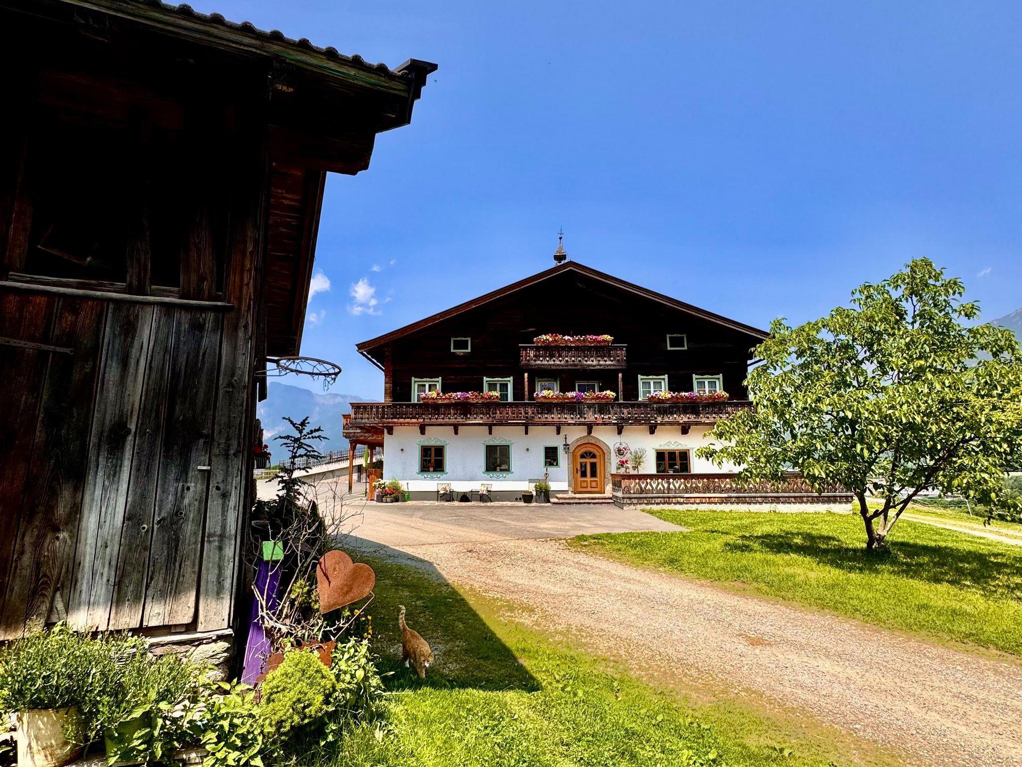 Er befindet sich auf einem der schönsten Plätze in Saalfelden: auf einem kleinen Plateau nur ein paar Gehminuten vom Stadtzentrum entfernt. Zu Füßen des Hofes liegen Wiesen und der Ritzensee. Der Ausblick auf die Gebirgszüge der Leoganger und Loferer Steinberge und das Steinerne Meer ist einfach atemberaubend!
