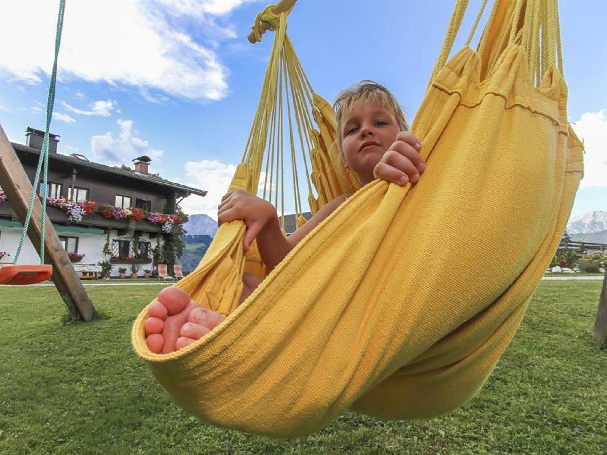 Unsere Familienfreundlichkeit zeigt sich in vielen liebevollen Details: Ob mit Kinderbett, Hochstuhl oder einem Kinderspielplatz, hier sind die kleinen Gäste herzlich willkommen! Während Sie die Natur genießen, können die Kinder nach Herzenslust im Sandkasten buddeln oder auf der Kinderschaukel schwingen. Lassen Sie Ihre Seele baumeln auf unserer Liegewiese oder beim Grillen mit Hofeigene Produkte unter freiem Himmel.