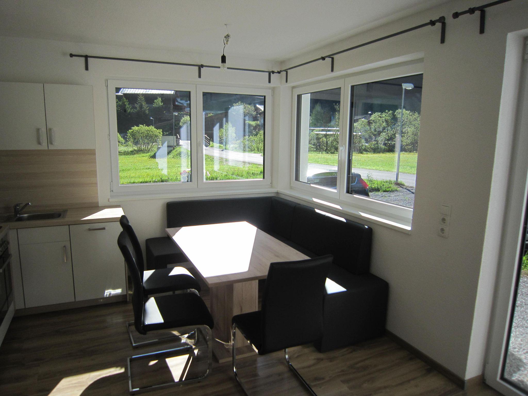 Küchenausstattung: Cerankochfeld mit Dunstabzug, Backofen, Kühlschrank, Spülmaschine, Wasserkocher, Filterkaffeemaschine, die wichtigsten Utensilien in einer Küche. Sitzecke mit großem Tisch, im Essbereich TV Ecke mit separater Couch, 2 Schlafzimmer mit jeweils 3 Betten (1 Doppelbett, 1 Einzelbett) inkl. großzügigen Stauraum, Bad mit Dusche und WC - flauschige Handtücher sowie WC Papier (2 Rollen), Sonnenterrasse mit Sitzmöglichkeiten im EG sowie ein großer Balkon im OG, 2 Parkplätze, WLAN, täglicher Brötchenservice, Skier: Abstellmöglichkeit im Keller - separater Eingang hinter dem Haus, Skiausrüstung: Aufbewahrung und Unterbringung im Skiraum