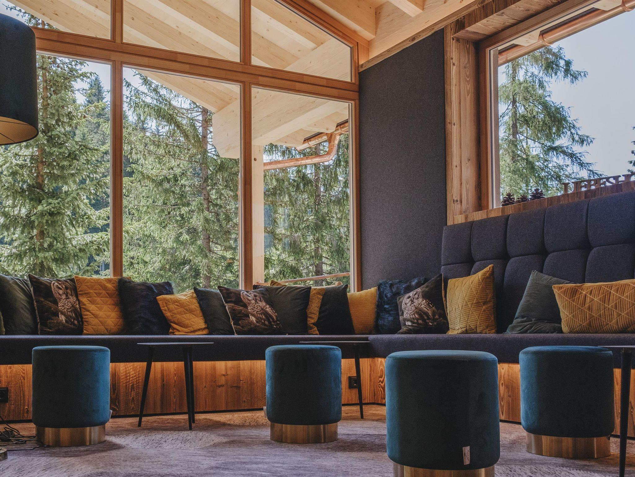 Almwellness-Zimmer (Nichtraucher): 35 m²+6 m² Balkon für 2 Personen, Sitzecke, Bad und Dusche, Doppelwaschbecken, getrenntes WC mit Bidet, Haarfön, beleuchteter Schminkspiegel, Sat-Tv, Radio-Tv, Zimmersafe, Telefon, Stromfreischaltung, Naturholzmöbel