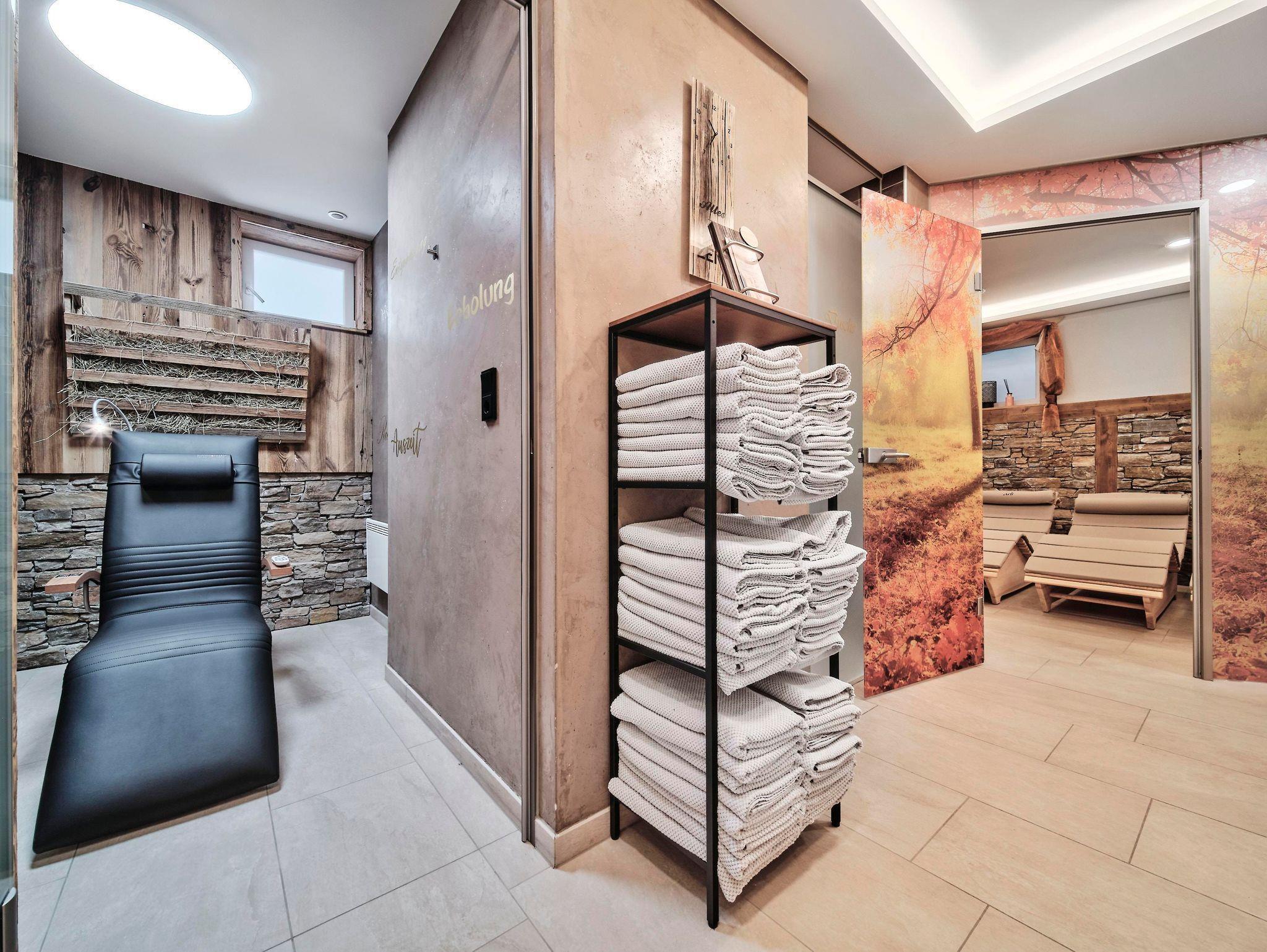 Saunalandschaft mit Almsauna, Kristalldampfbad, Infrarotlounge, Erlebnisduschen, Ruheraum und Tee-Eck (täglich von 15:00 Uhr - 18:30 Uhr).
