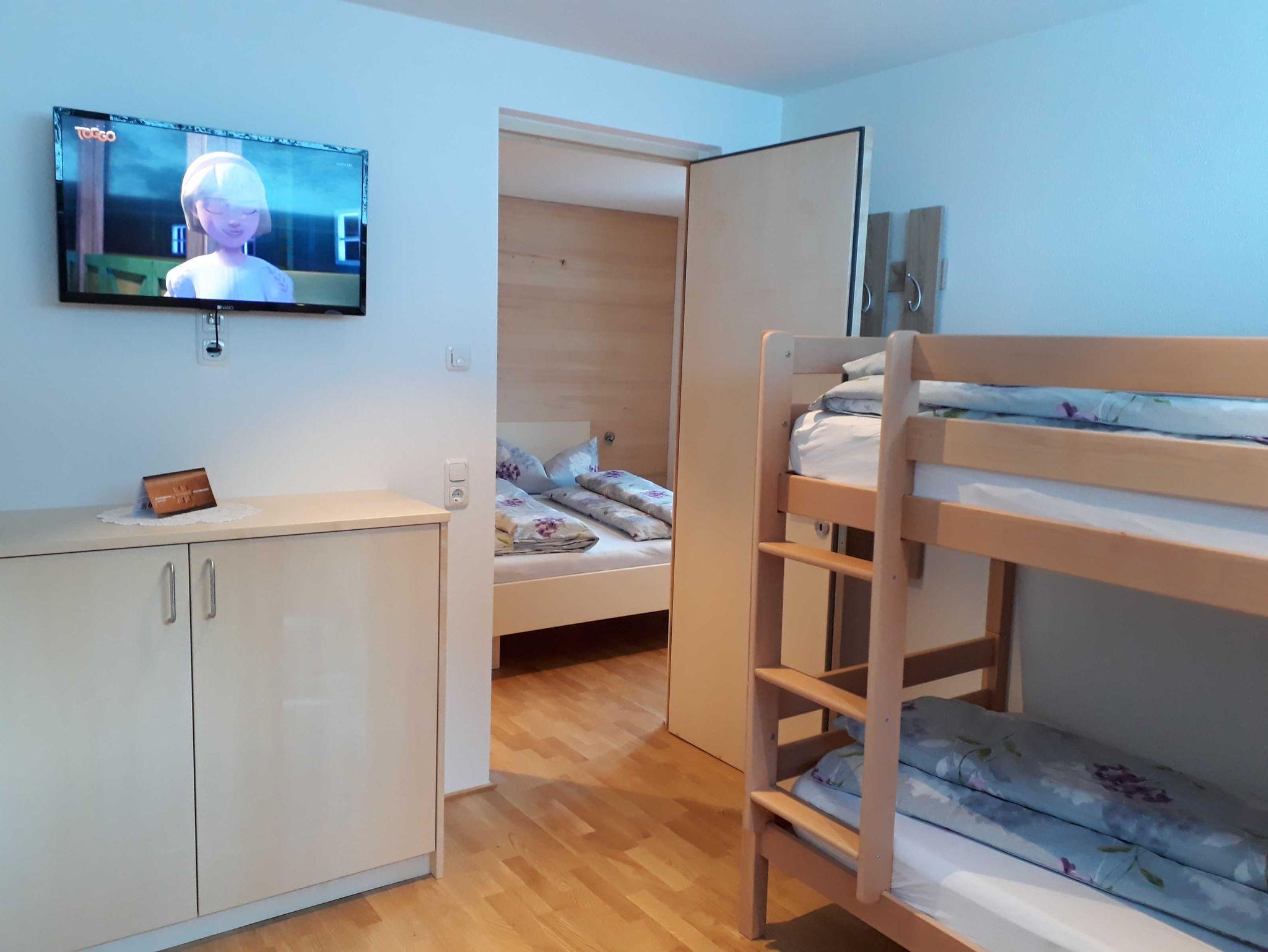 Unser EBENERDIGES Komfort-Appartement wurde neu renoviert und um zwei Schlafzimmer und ein Badezimmer vergrößert. Wir haben jetzt Platz für 2-7 Personen. Die Ferienwohnung ist mit einer komplett eingerichteten Wohnküche inkl. Geschirrspülmaschine, SAT-TV, WLAN, 2 DU/WC, drei Schlafzimmern und einer Sitzgarnitur im Freien ausgestattet.