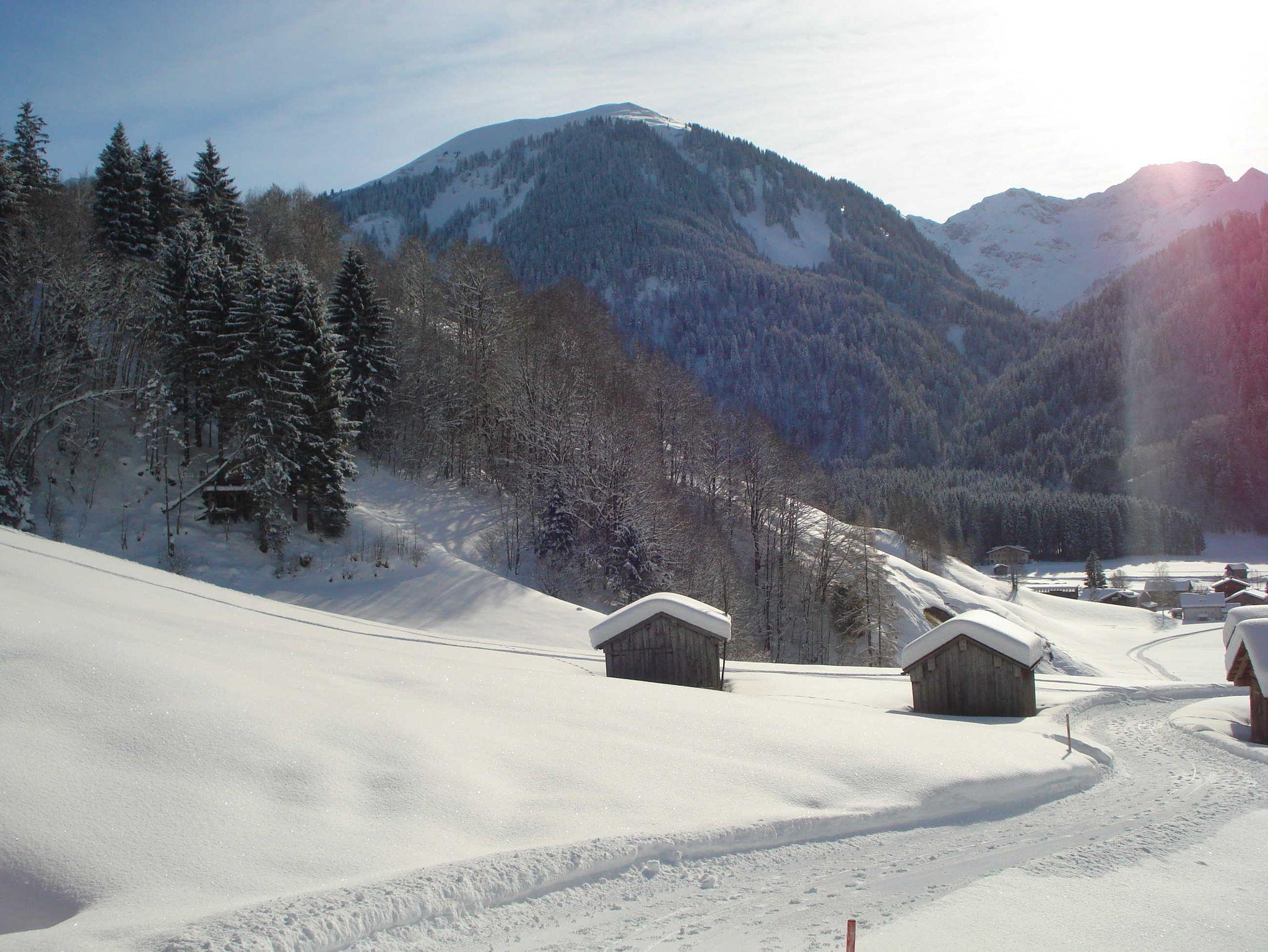 Im WINTER fährt der Schibus im 20- oder 40 Minutentakt an unserem Haus vorbei und bringt Sie ganz bequem, ohne Parkplatzsuche, zu den Bergbahnen Diedamskopf. Die Bushaltestelle ist gleich nebenan. Der Einstieg zur Langlaufloipe ist beim Nachbarhaus. Mit Schneeschuhen können Sie hinter unserem Haus über verschneite Wege und Hänge wandern.
