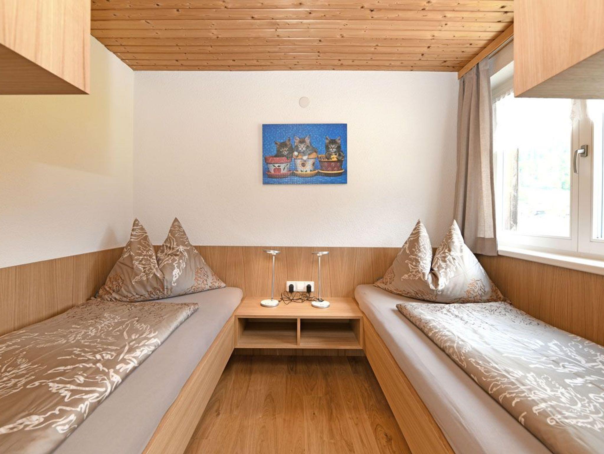 Komfortabel ausgestattet mit Doppelbett, Sitzbank, Tisch mit Stuhl, Küche komplett ausgestattet mit Kaffeemaschine, Wasserkocher, Sat-TV, DU/WC