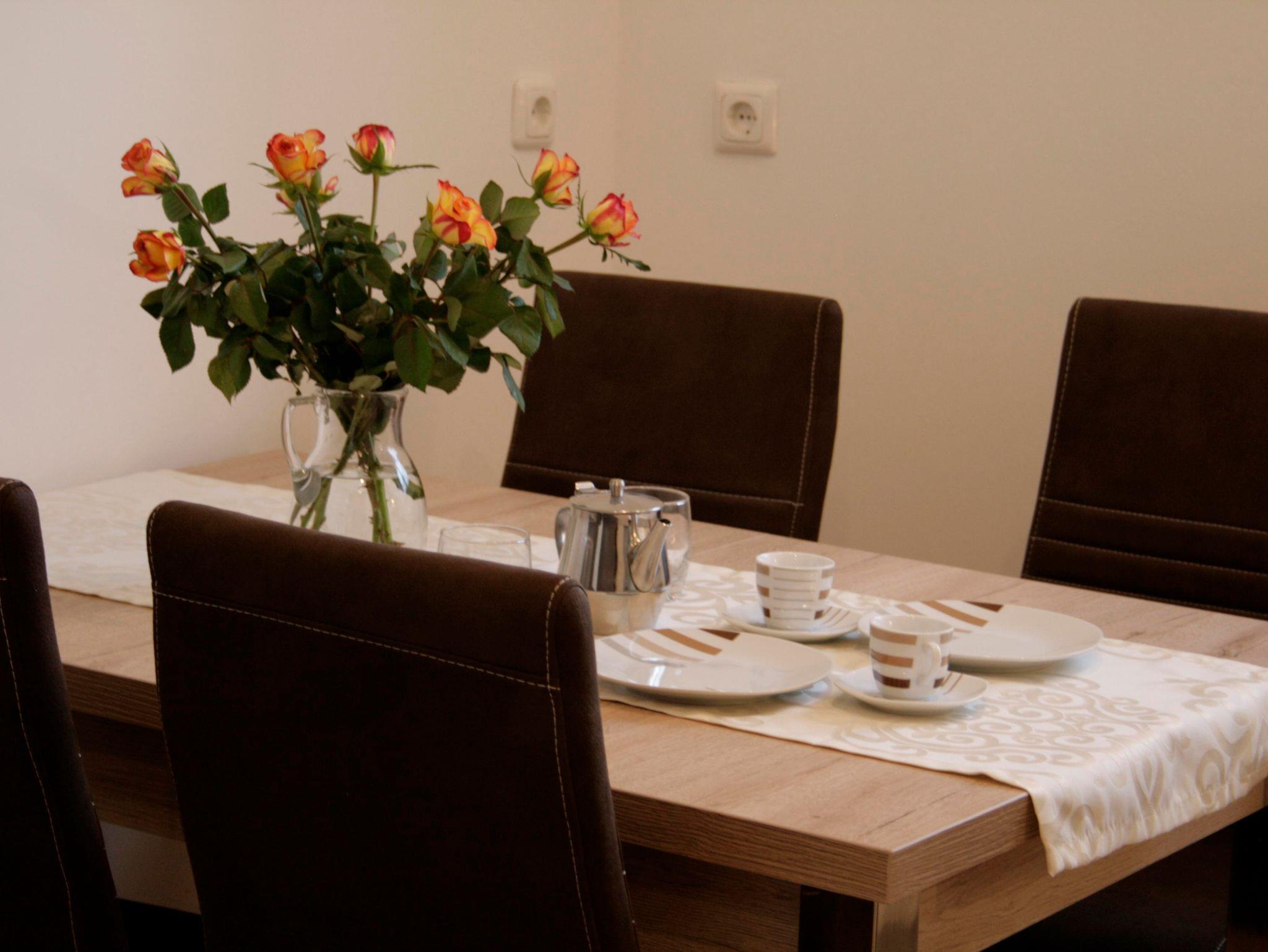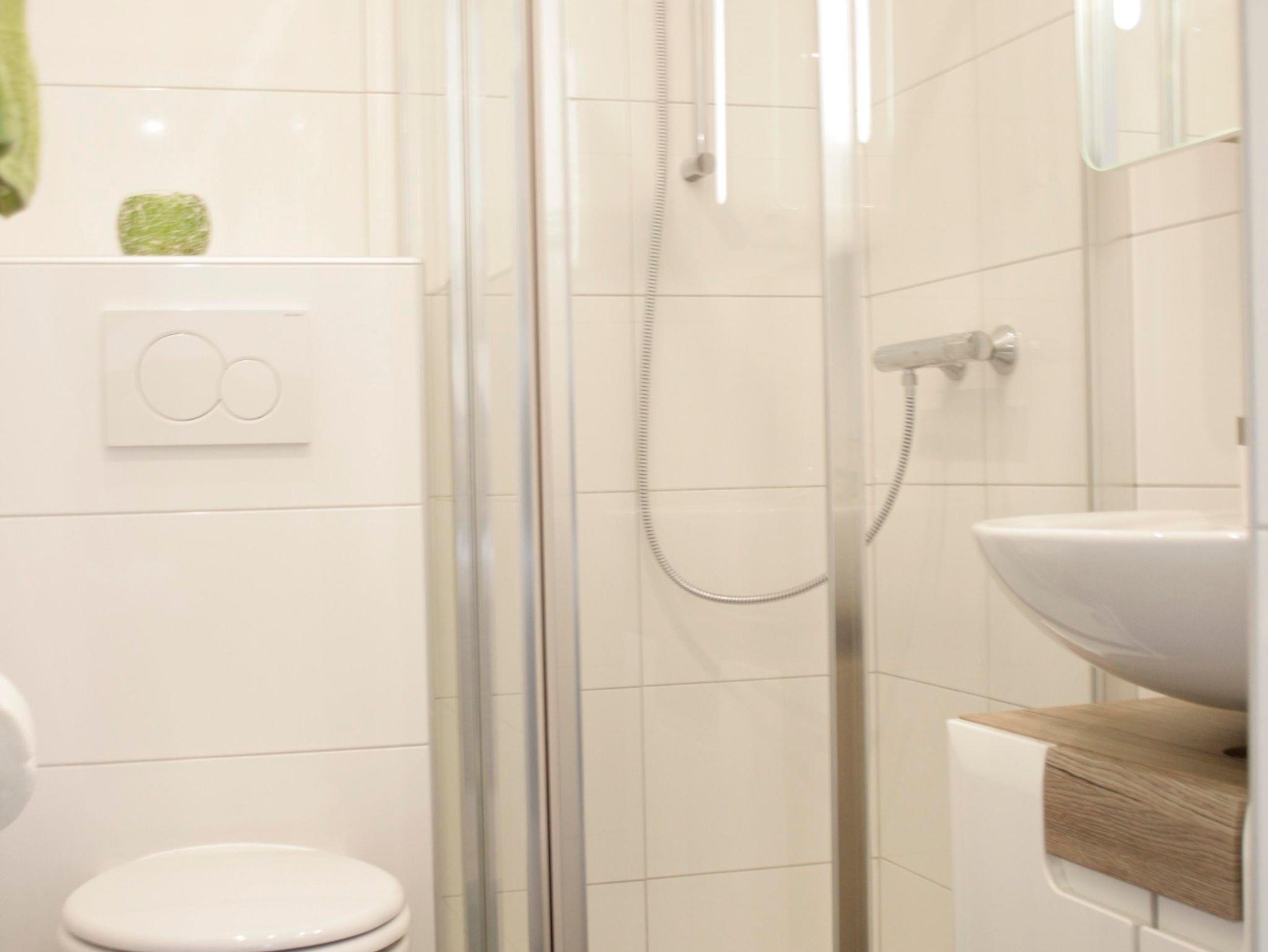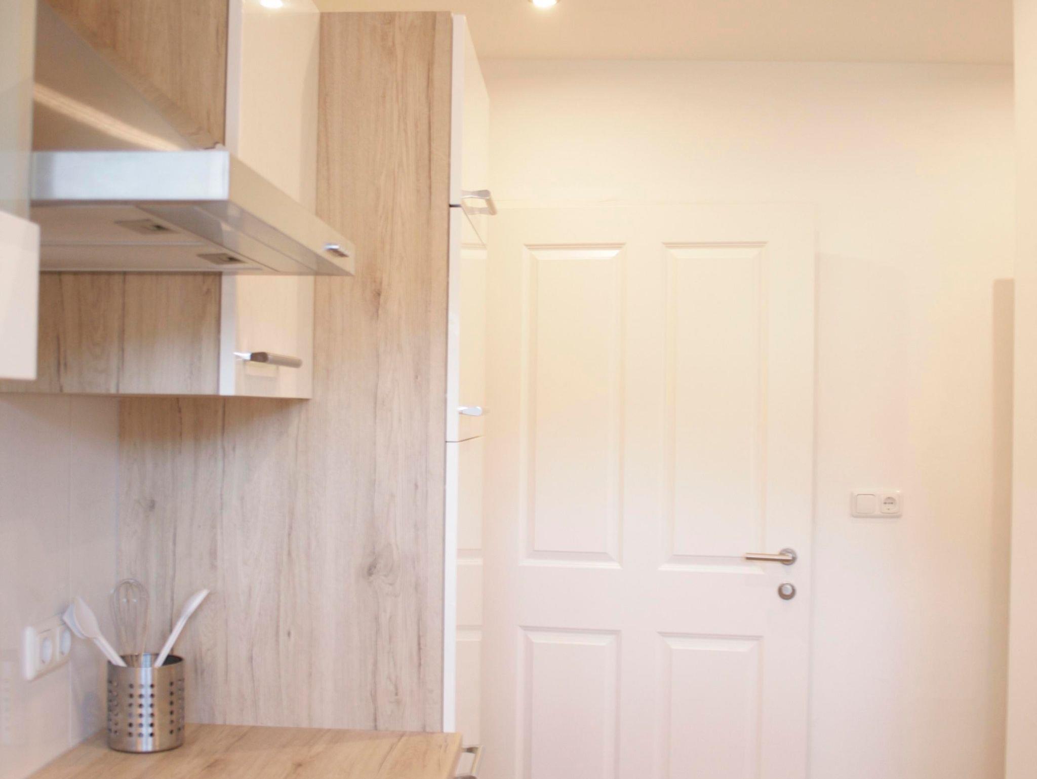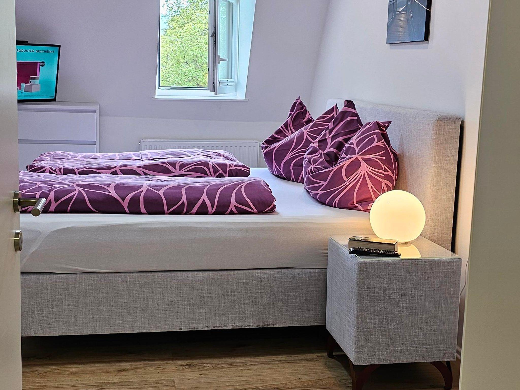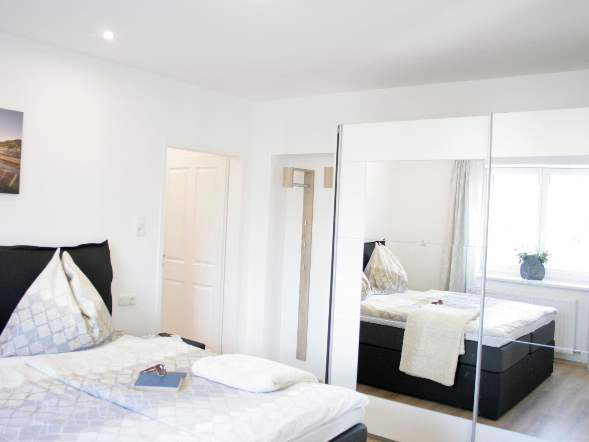 Ferienwohnung bestehend aus 1 Schlafzimmer( Boxspringbett) und TV/Sat, 1 kleines Zimmer mit Couch, Küche (komplett ausgestattet: Geschirrspüler, Küchlschrank mit Gefrierfach, Backofen, Herd und Sitzecke) und DU/WC.