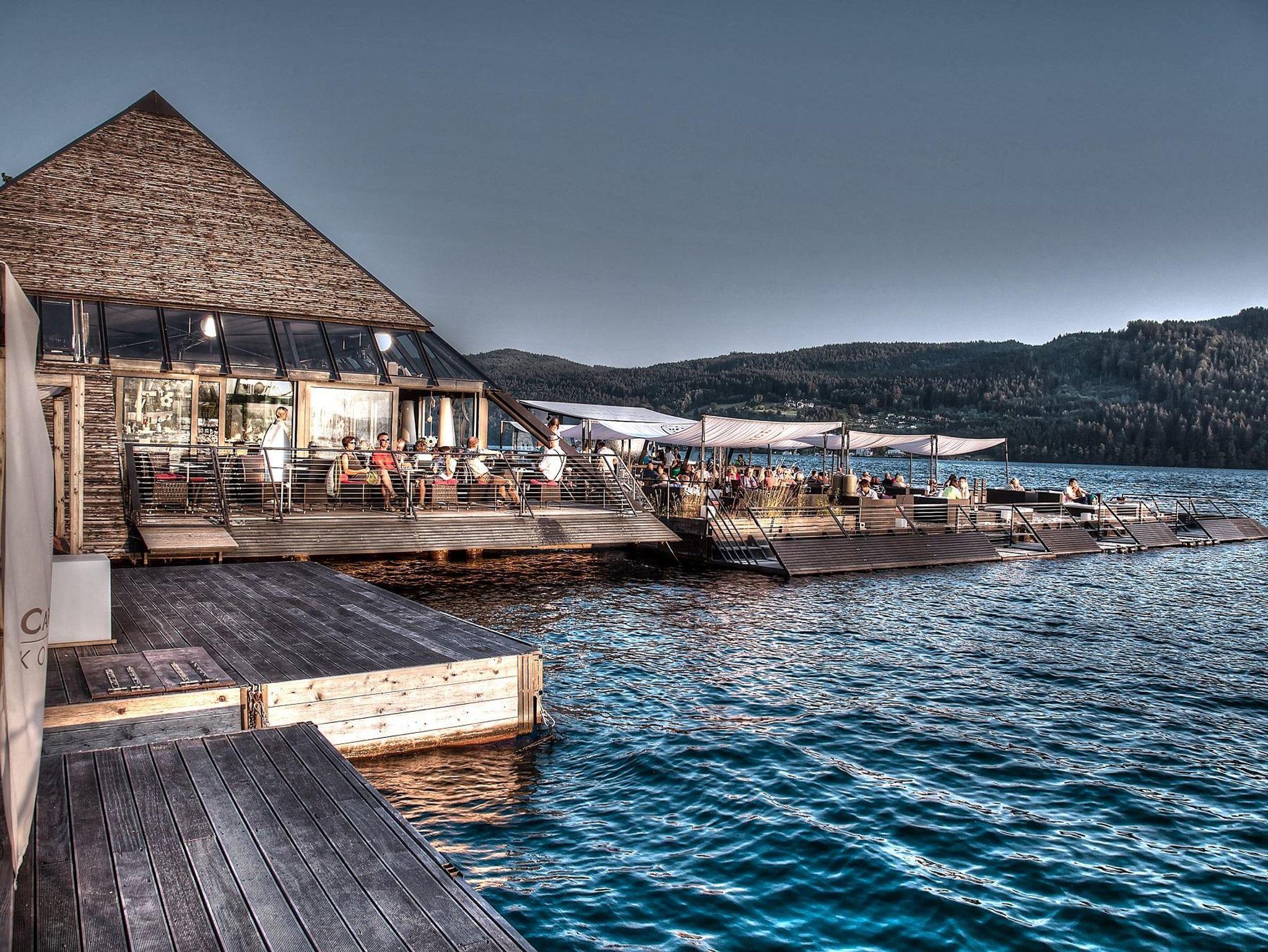 Entspannung nach der Tour bietet das Seenwellness im 1. Kärnten Badehaus und in Bars und Restaurants am Wasser den Tag ausklingen lassen.
