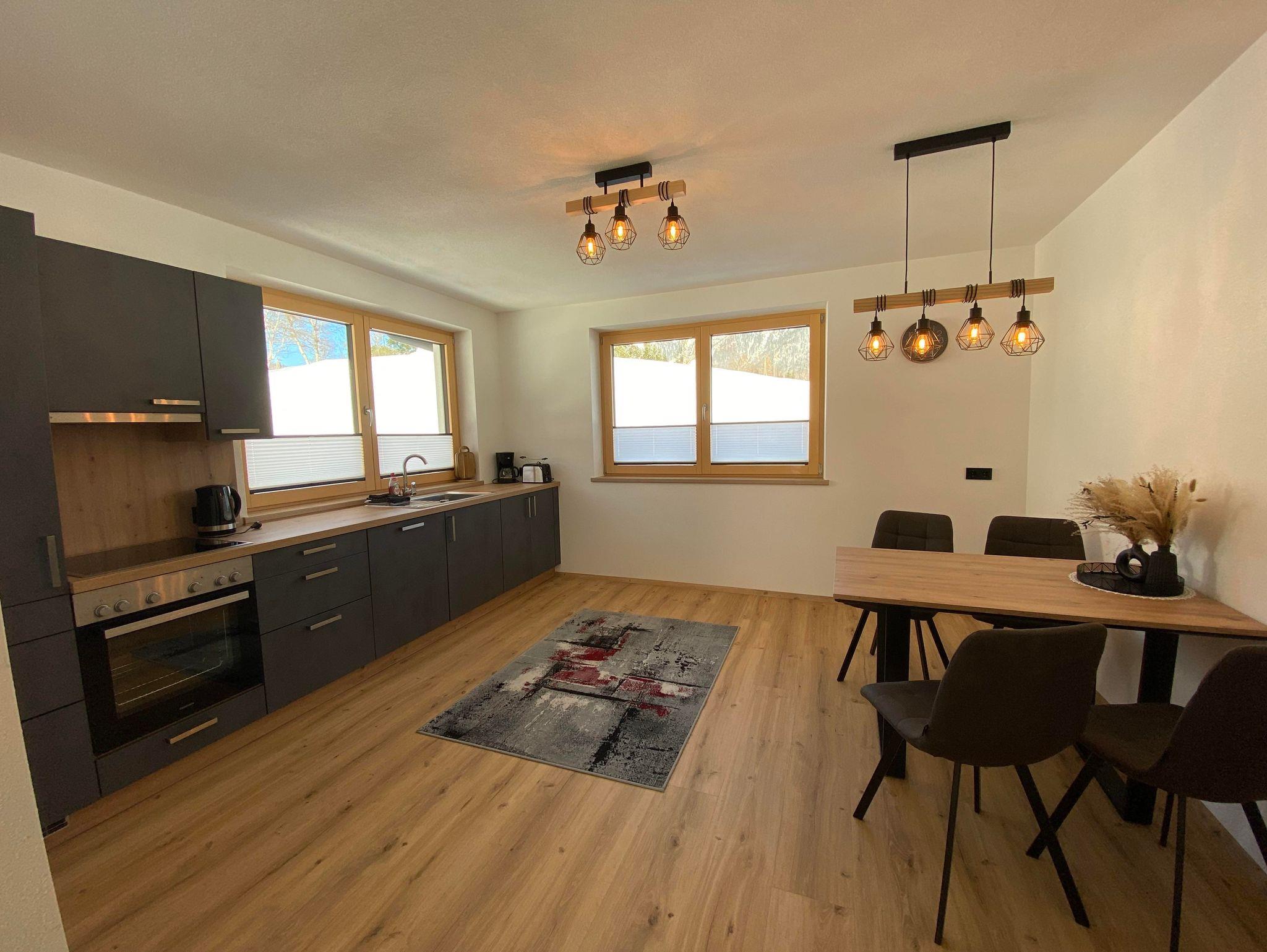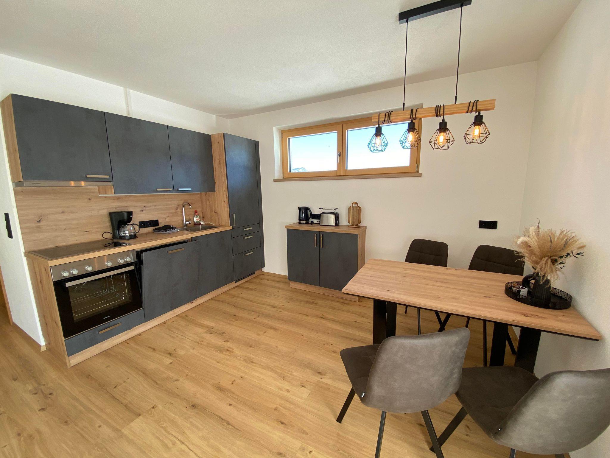 1 Vorraum mit Garderobe, großer gemütlicher Wohnraum mit vollausgestatteter Wohnküche, Couch (Schlafmöglichkeit für 2 Personen), Sat-TV, kostenloses WLAN, Esstisch für 4 Personen,