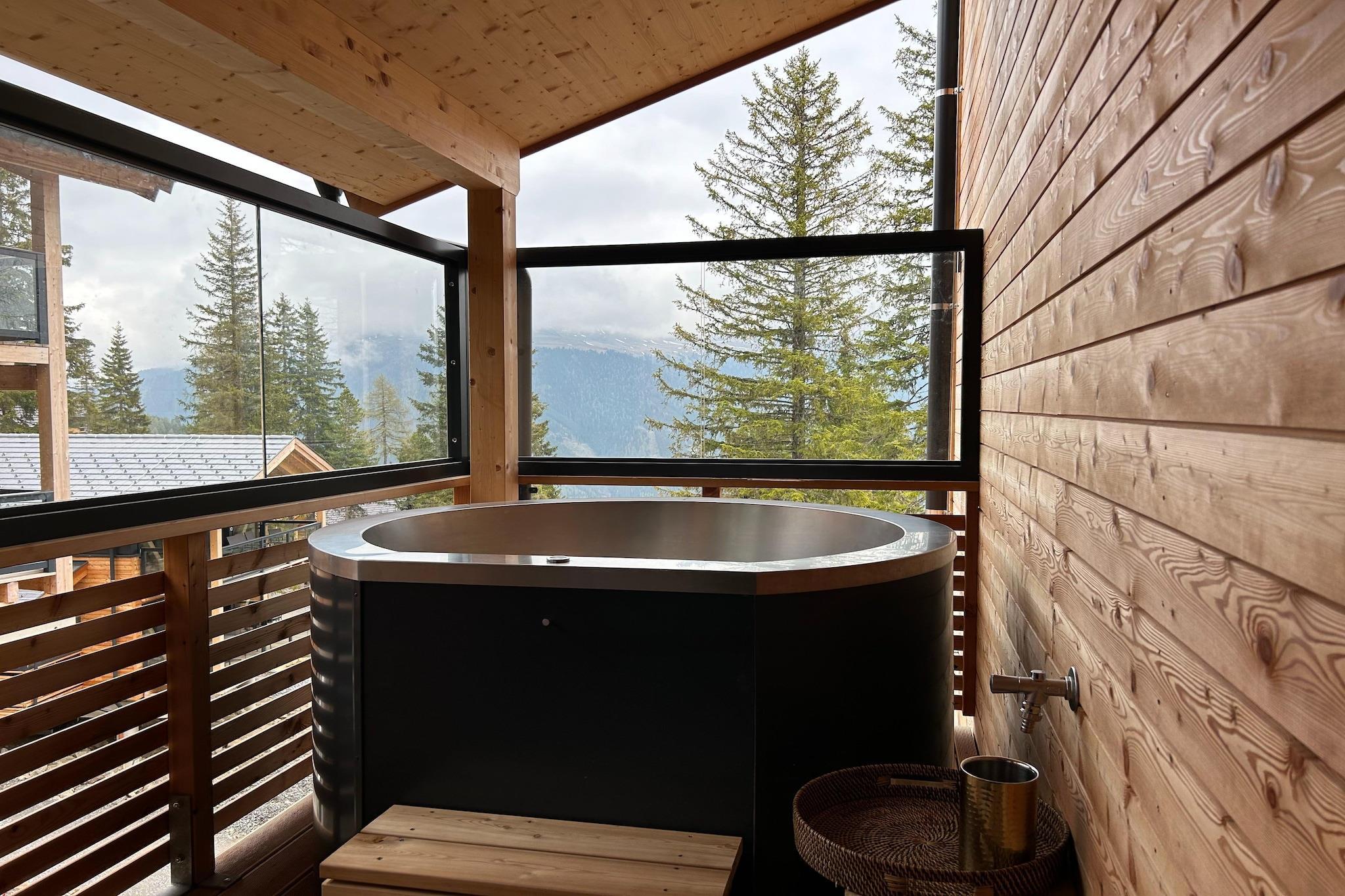 The modern natural chalets, built in 2023, offer plenty of space and comfort for up to 8 people. A highlight is the wellness area in the large bathroom with whirlpool, a small sauna (for 1-2 people) and a wonderful view. The open kitchen is fully equipped with 4 hotplates, refrigerator with freezer, oven and microwave as well as a coffee machine, a kettle and much more. Another highlight is the spacious balcony with a view of the mountains. There are also several parking spaces around the house. The Turracher Höhe offers everything a holiday needs: tailor-made family packages in child-friendly businesses, state-of-the-art lifts and a quality of service that is second to none. With slopes reaching over 2,200 m above sea level, the ski area is one of the most snow-sure ski regions in Austria. The Turracher Höhe is the ideal holiday and excursion destination for families who want to enjoy the summer without the heat. Away from the hustle and bustle of tourists, undisturbed and carefree. Because in addition to the heat, the mosquitoes also stay in the valley and there is almost complete freedom from pollen. On the Turrach, Alpine wellness is included, so to speak! Highlights *breathtaking view from the balcony *Whirlpool tub