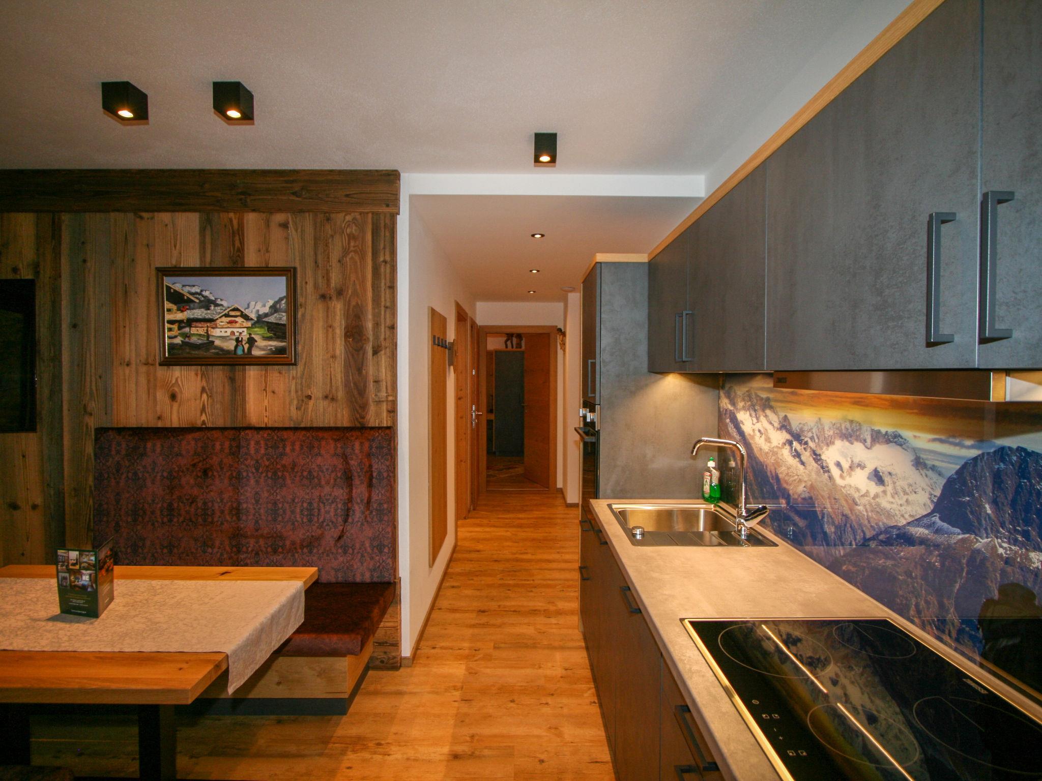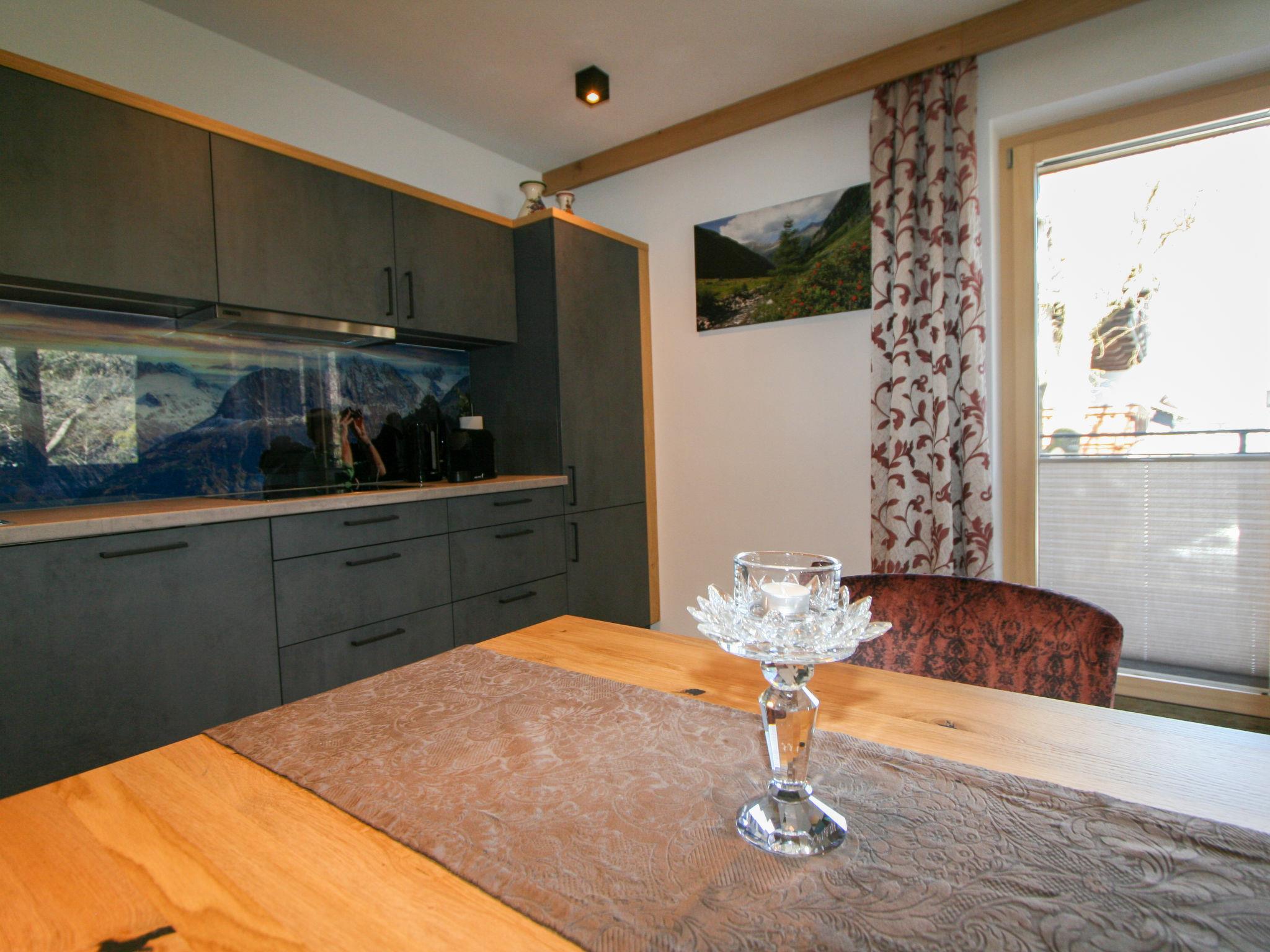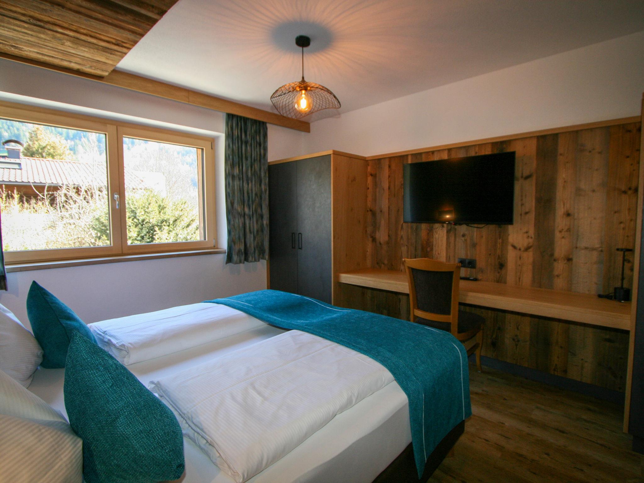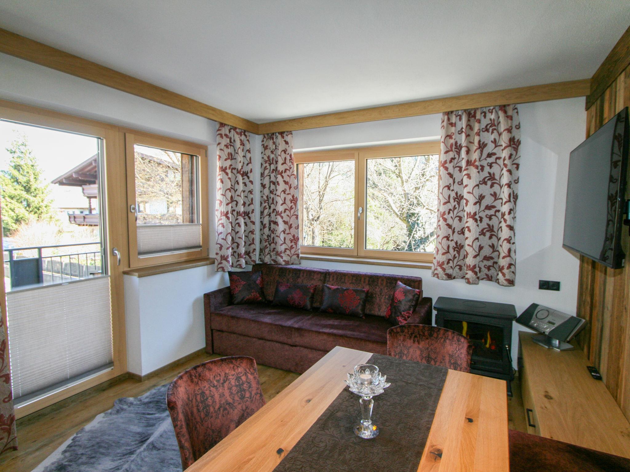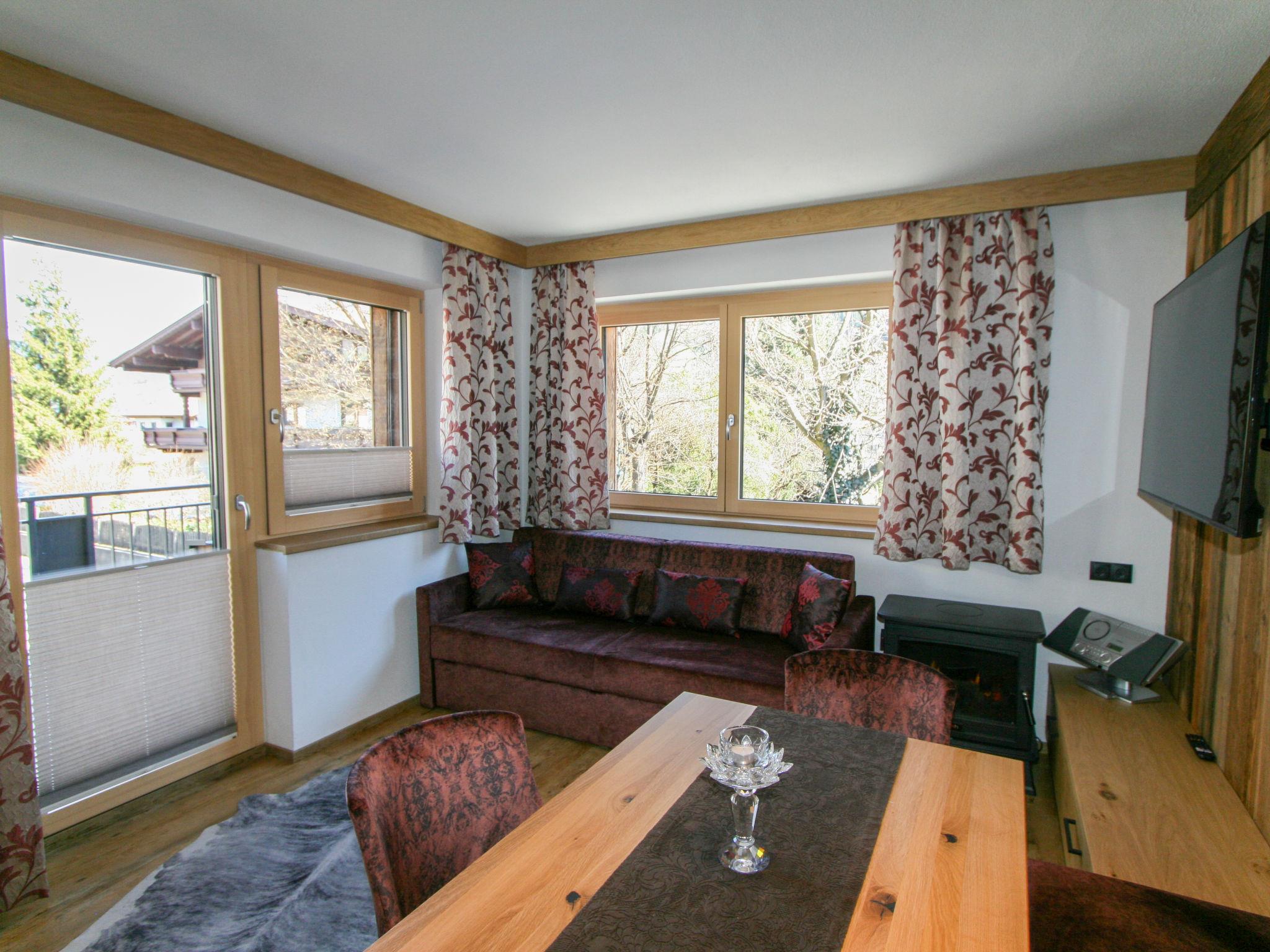 "Erzherzog’s Apts/Zillertal Alpen Lodge", 2-room apartment 60 m2 on 1st floor. Very comfortable and stylish furnishings: 1 double bedroom with Dressing room with TV (flat screen). Kitchen-/living room (oven, dishwasher, 4 ceramic glass hob hotplates, toaster, kettle, microwave, electric coffee machine) with Scandinavian wood stove (only for decoration), dining table and TV (flat screen), radio and CD-player. Shower, sep. WC. Underfloor heating. Small terrace. Balcony furniture. Facilities: safe, hair dryer. Internet (WiFi). E-charging station.