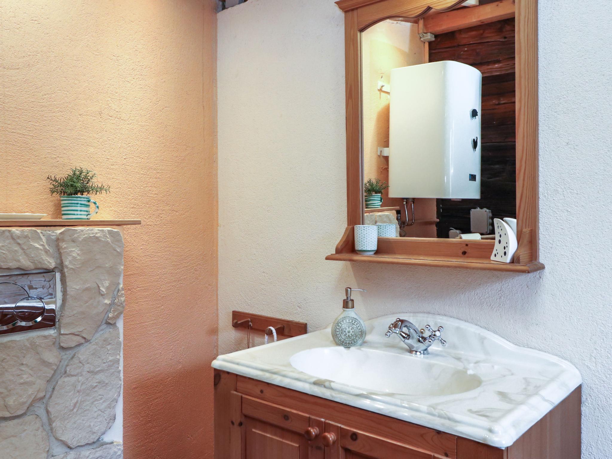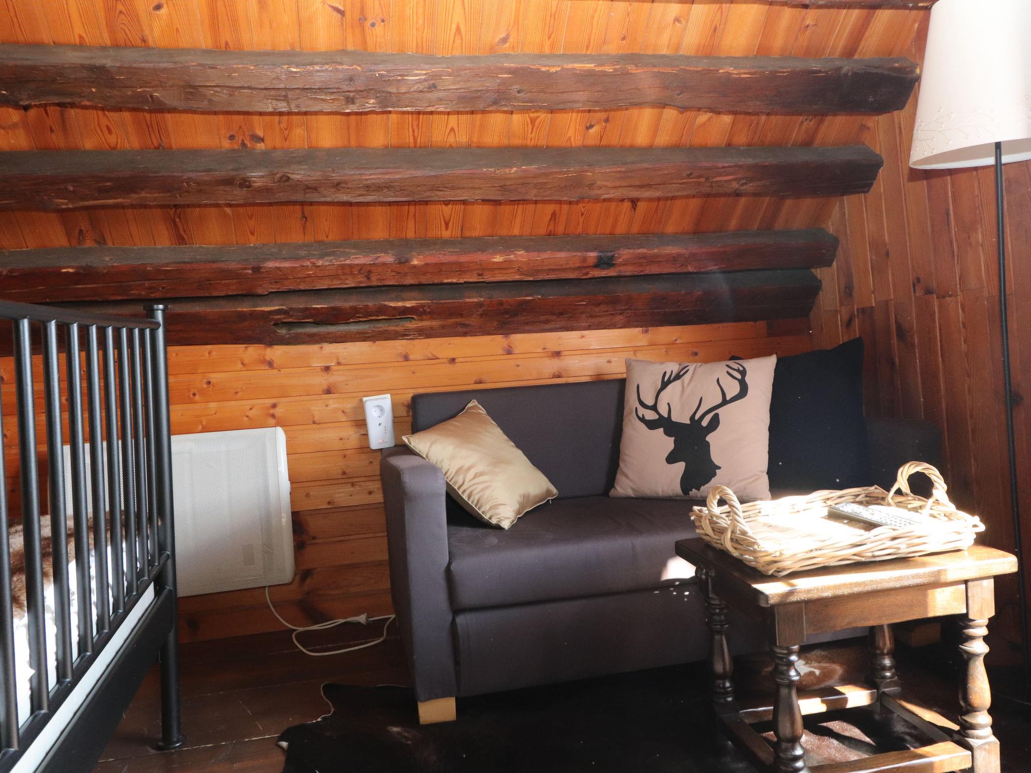 2-room house 48 m2 on 2 levels. Stylish and romantic furnishings: living/dining room with dining nook, hi-fi system and electric heater. Exit to the terrace. Small kitchenette (2 ceramic glass hob hotplates, electric coffee machine). Bath/WC. Upper floor: (steep stair), 1 room with sloping ceilings, ceiling height 100 - 330 cm with 1 french bed (140 cm, length 200 cm), satellite TV. Beautiful view of the countryside. Facilities: Internet (WiFi, free). Please note: not suitable for small children. Non-smoking house. Maximum 1 pet/ dog allowed. Smoke alarm, fire extinguisher. The bedroom is reached via a steep wooden staircase, which is secured in the room with a grated door.