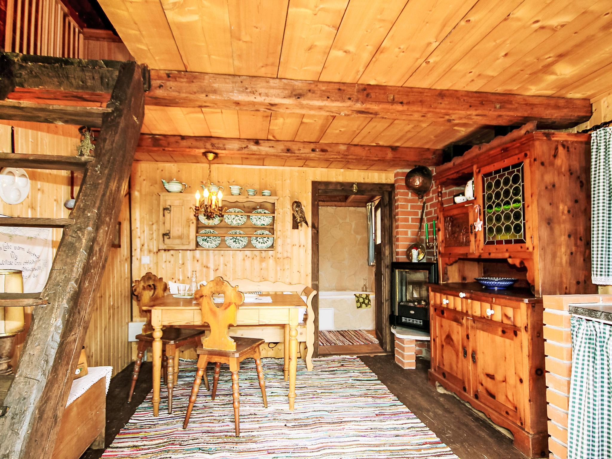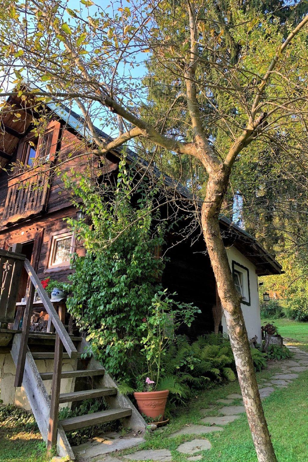 Small, rustic timber house "Reserl", from the 19th century, surrounded by meadows and fields. Outside the resort, in a quiet, sunny position, 5 km from the lake, in a cul-de-sac. For shared use: orchard, lawn for sunbathing. Private: terrace (10 m2), garden furniture, parking at the house. Grocery 5 km, supermarket 5 km, restaurant 400 m, bus stop 500 m, railway station, outdoor swimming pool 5 km, indoor swimming pool 5 km. Golf course (18 hole) 8 km, tennis 5 km, riding stable 200 m, skisport facilities 12 km. Nearby attractions: Minimundus Klagefurt 27 km, Aussichtsturm Pyramidenkogel 20 km, Affenberg Burg Landskron 18 km, Casino Velden 5 km. Well-known lakes can easily be reached: Wörthersee 5 km. Please note: the owner lives on the same property. Animals in the neighbourhood. Railway line 350 m from the property. The former granary stands in an orchard. Access is via 4 steps and the terrace. A horse and 3 Carinthian spectacled sheep are kept.