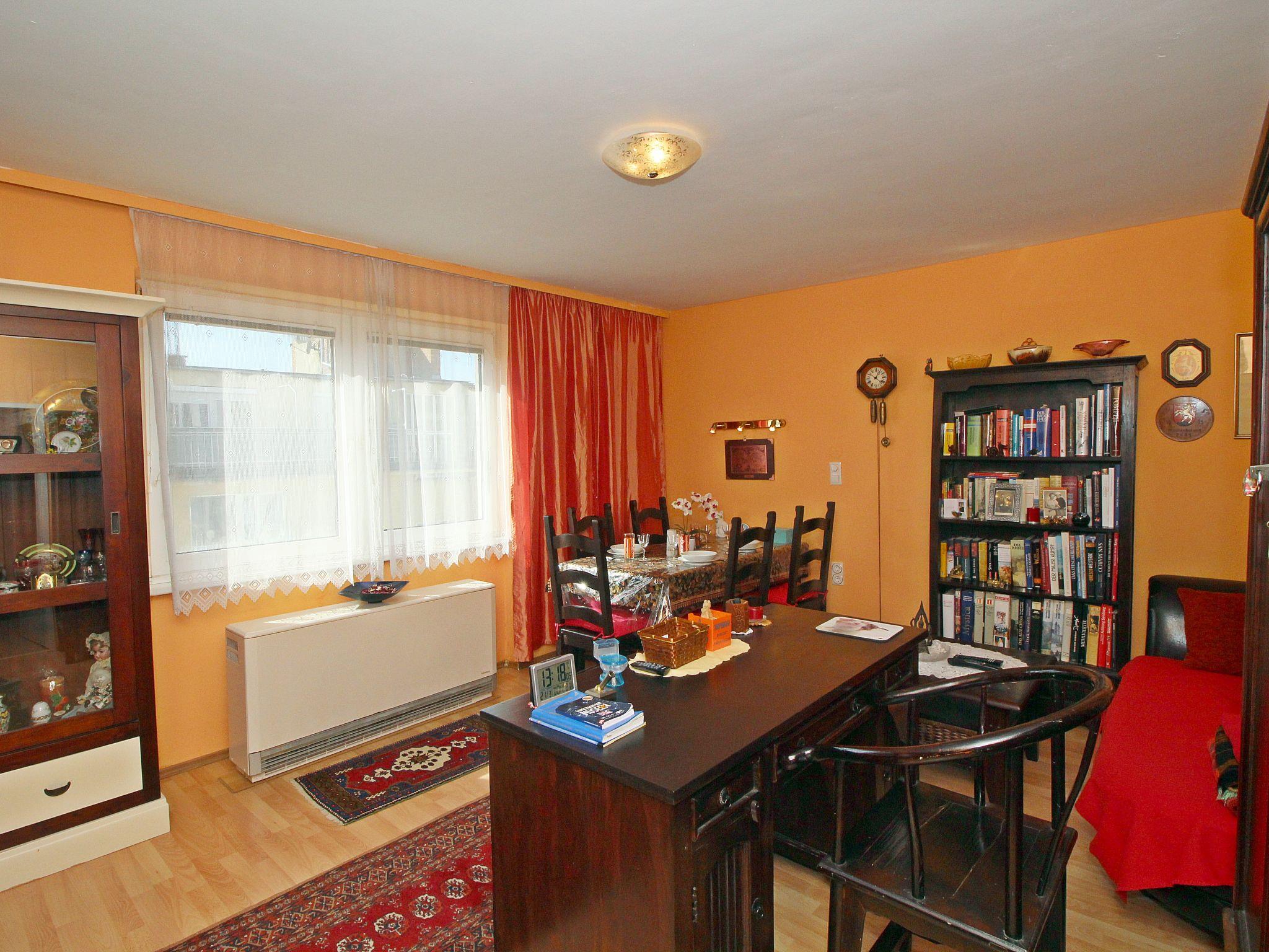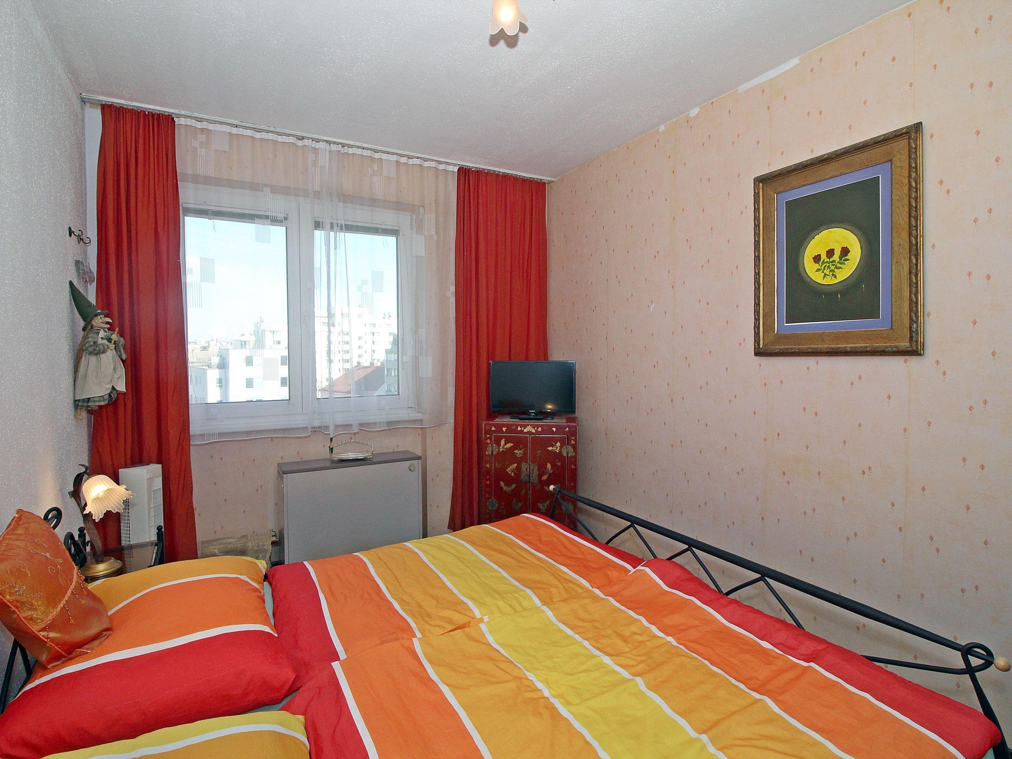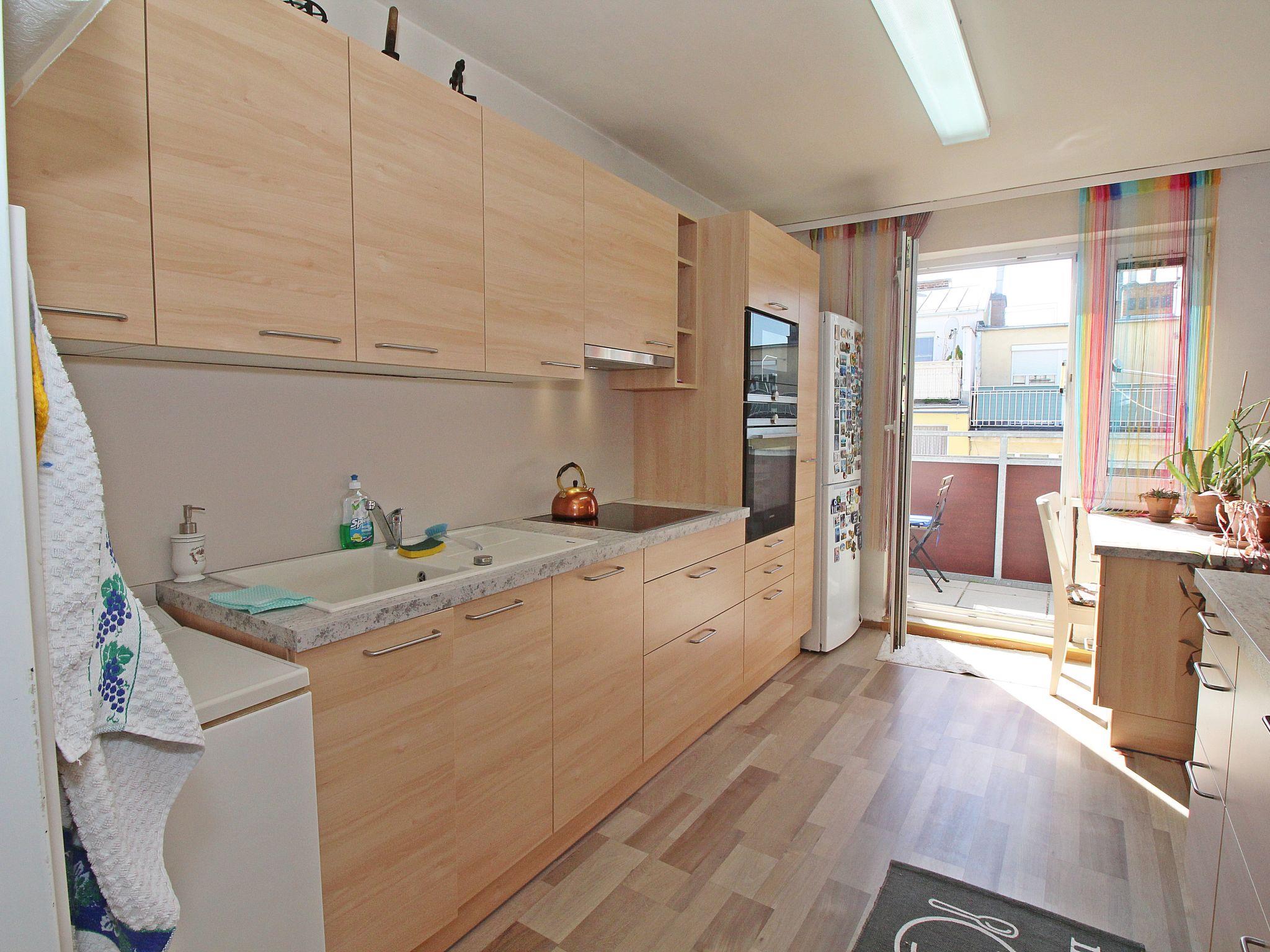 "Vienna waits for you", 3-room apartment 65 m2, on the top floor. Spacious and bright, rustic furnishings: entrance hall. Living/dining room with dining table and satellite TV (flat screen), hi-fi system. Exit to the terrace. 1 double bedroom, window onto the courtyard with satellite TV (flat screen), fan. 1 small double bedroom with 1 french bed (140 cm, length 200 cm). Large, open kitchen (oven, dishwasher, 4 ceramic glass hob hotplates, microwave, freezer, electric coffee machine, Capsules for coffee machine (Cafissimo) extra). Bathroom, sep. WC. Wooden floors. Small terrace 8 m2, south-west facing position. Side view of the city. Facilities: iron, hair dryer. Internet (WiFi, free). Please note: suitable for families. Non-smokers only.