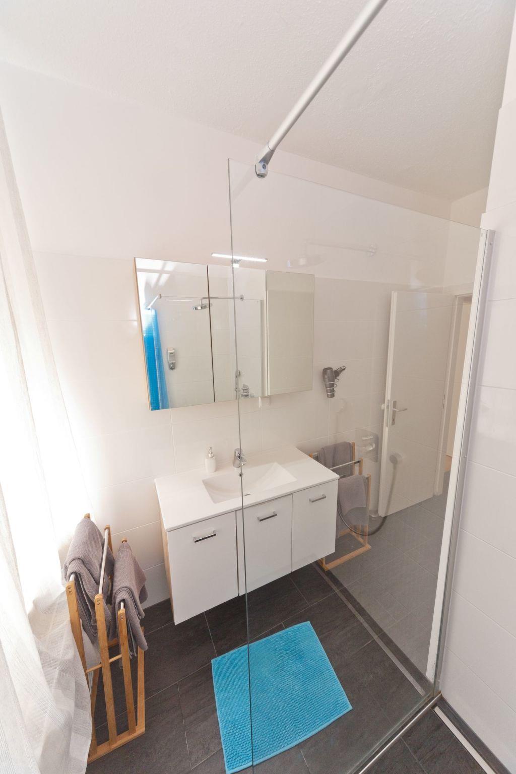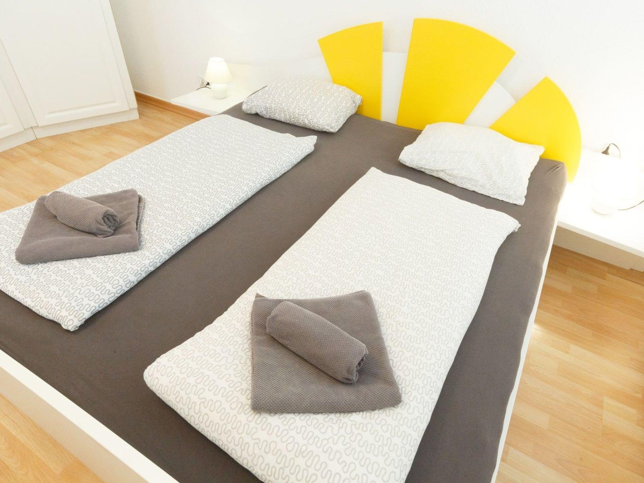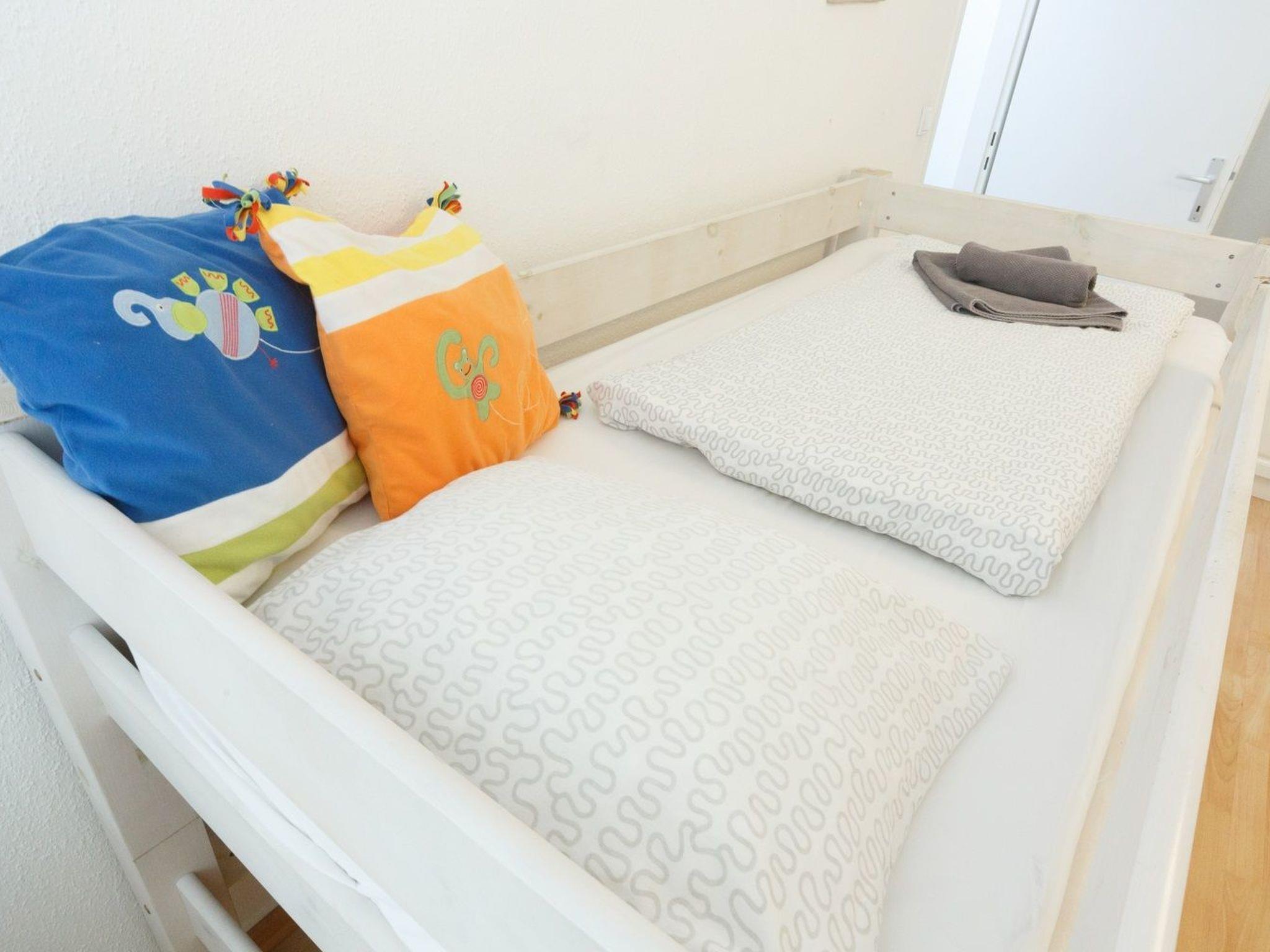 Inside the flat, you will find a modern and comfortably furnished living area with an integrated kitchenette that leaves nothing to be desired: From the four-ring hob to the oven, a capsule coffee machine to the fridge/freezer and dishwasher, everything you need for a self-catered stay is provided. The living area and dining area invite you to linger, while two tastefully furnished bedrooms with laminate flooring, a large double bed in the master bedroom and two single beds in the second room ensure a restful night's sleep. A spacious bathroom with shower and separate WC complete the living comfort.