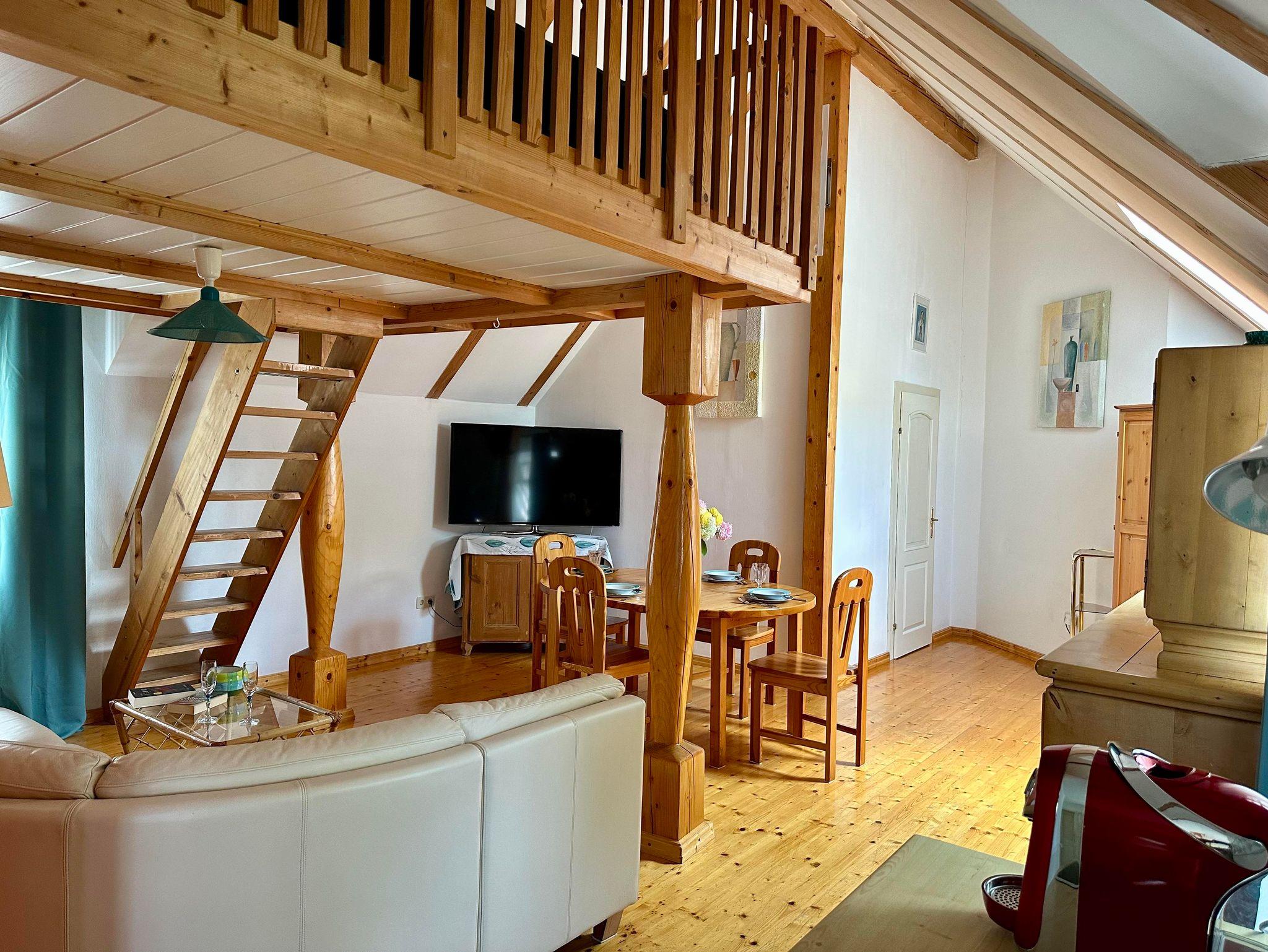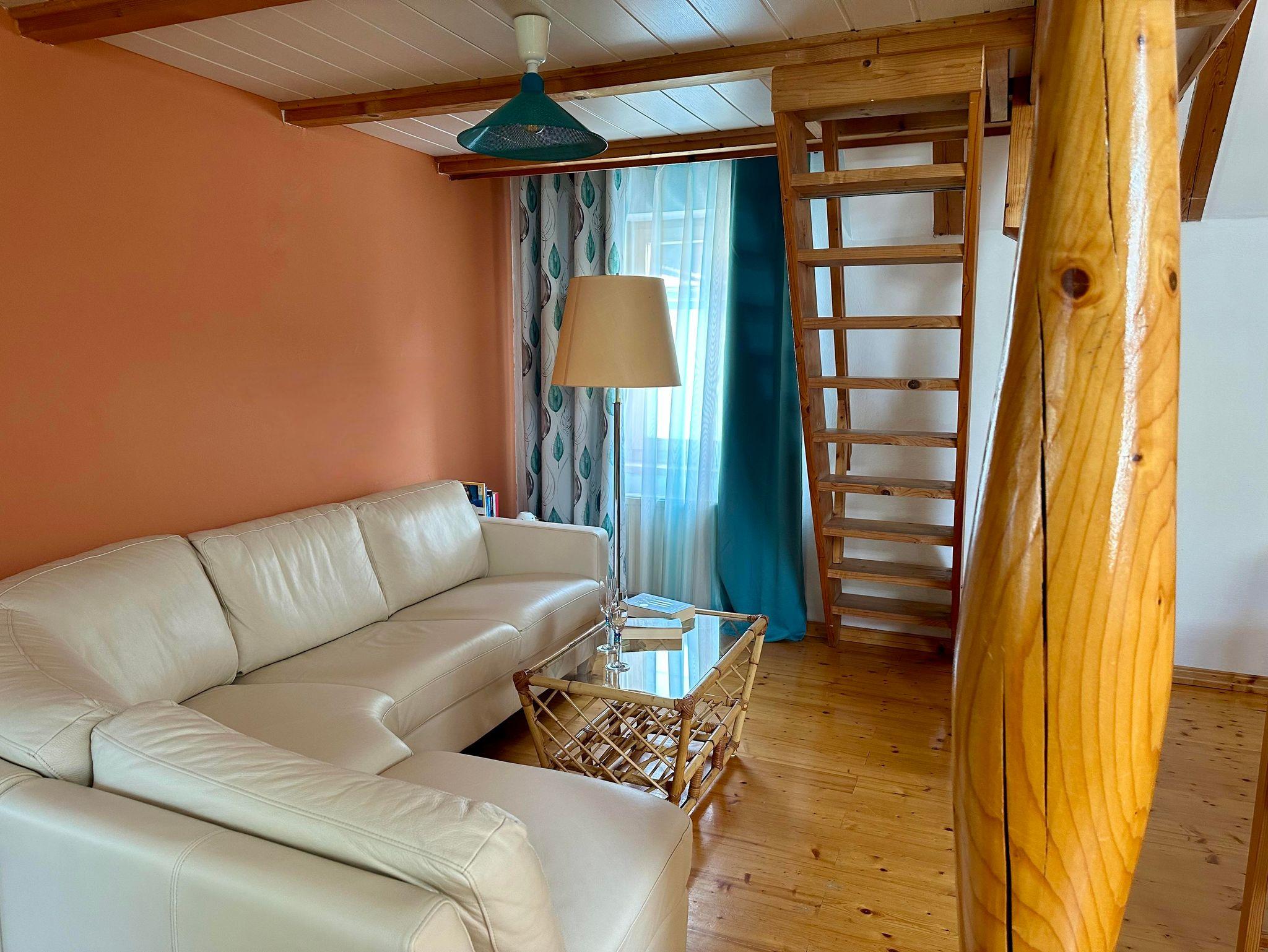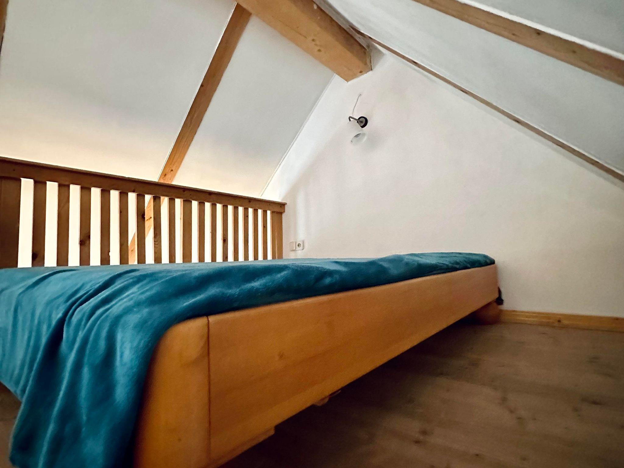 Die Wohnung verfügt neben einem Schlafzimmer mit Doppelbett auch über ein Doppelbett auf einer Galerie.